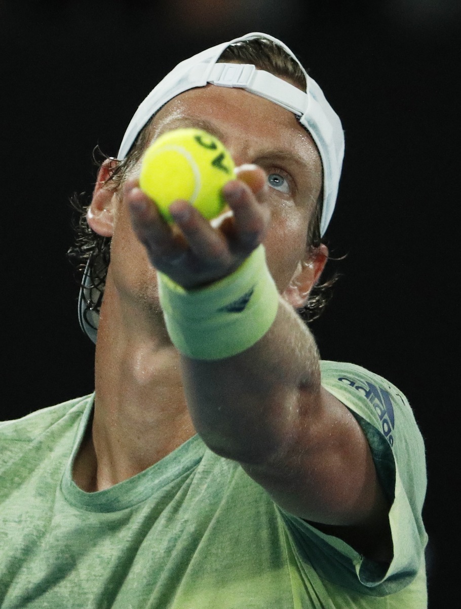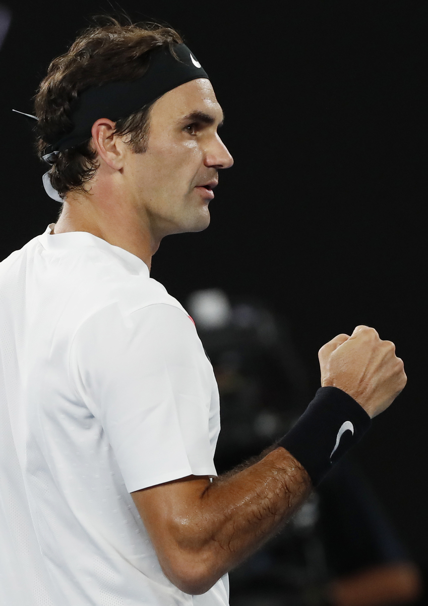 MELBOURNE (Reuters) - A momentary loss of Roger Federer's trademark cool enlivened an otherwise routine victory by the defending champion over Tomas Berdych as the Swiss player moved into the semi-finals of the Australian Open on Wednesday.