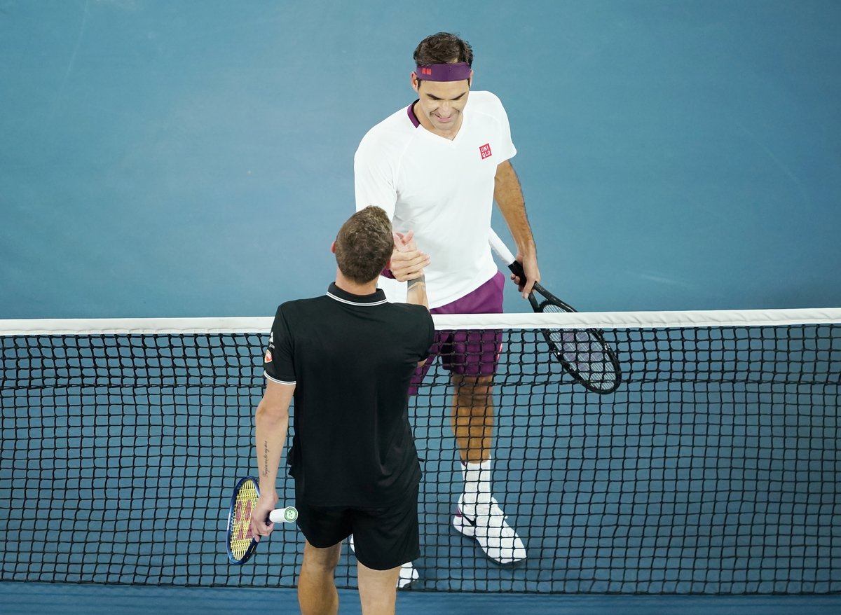 Tennis - Australian Open - Fourth Round - Melbourne Park, Melbourne, Australia - January 26, 2020. Hungary's Marton Fucsovics in action during his match against Switzerland's Roger Federer. REUTERS/Kim Hong-JiTennis - Australian Open - Fourth Round - Melbourne Park, Melbourne, Australia - January 26, 2020. Switzerland's Roger Federer serves during his match against Hungary's Marton Fucsovics. REUTERS/Kim Hong-JiTennis - Australian Open - Fourth Round - Melbourne Park, Melbourne, Australia - January 26, 2020. Switzerland's Roger Federer in action during his match against Hungary's Marton Fucsovics. REUTERS/Kim Hong-JiTennis - Australian Open - Fourth Round - Melbourne Park, Melbourne, Australia - January 26, 2020. Hungary's Marton Fucsovics reacts during his match against Switzerland's Roger Federer. REUTERS/Kim Hong-JiTennis - Australian Open - Fourth Round - Melbourne Park, Melbourne, Australia - January 26, 2020. Hungary's Marton Fucsovics in action during his match against Switzerland's Roger Federer. REUTERS/Kim Hong-JiTennis - Australian Open - Fourth Round - Melbourne Park, Melbourne, Australia - January 26, 2020. Switzerland's Roger Federer in action during his match against Hungary's Marton Fucsovics. REUTERS/Issei KatoTennis - Australian Open - Fourth Round - Melbourne Park, Melbourne, Australia - January 26, 2020. Switzerland's Roger Federer waves after his match against Hungary's Marton Fucsovics. REUTERS/Hannah MckayTennis - Australian Open - Fourth Round - Melbourne Park, Melbourne, Australia - January 26, 2020. Switzerland's Roger Federer celebrates after his match against Hungary's Marton Fucsovics. REUTERS/Hannah MckayTennis - Australian Open - Fourth Round - Melbourne Park, Melbourne, Australia - January 26, 2020. Switzerland's Roger Federer talks to the media after his match against Hungary's Marton Fucsovics. REUTERS/Kai Pfaffenbach