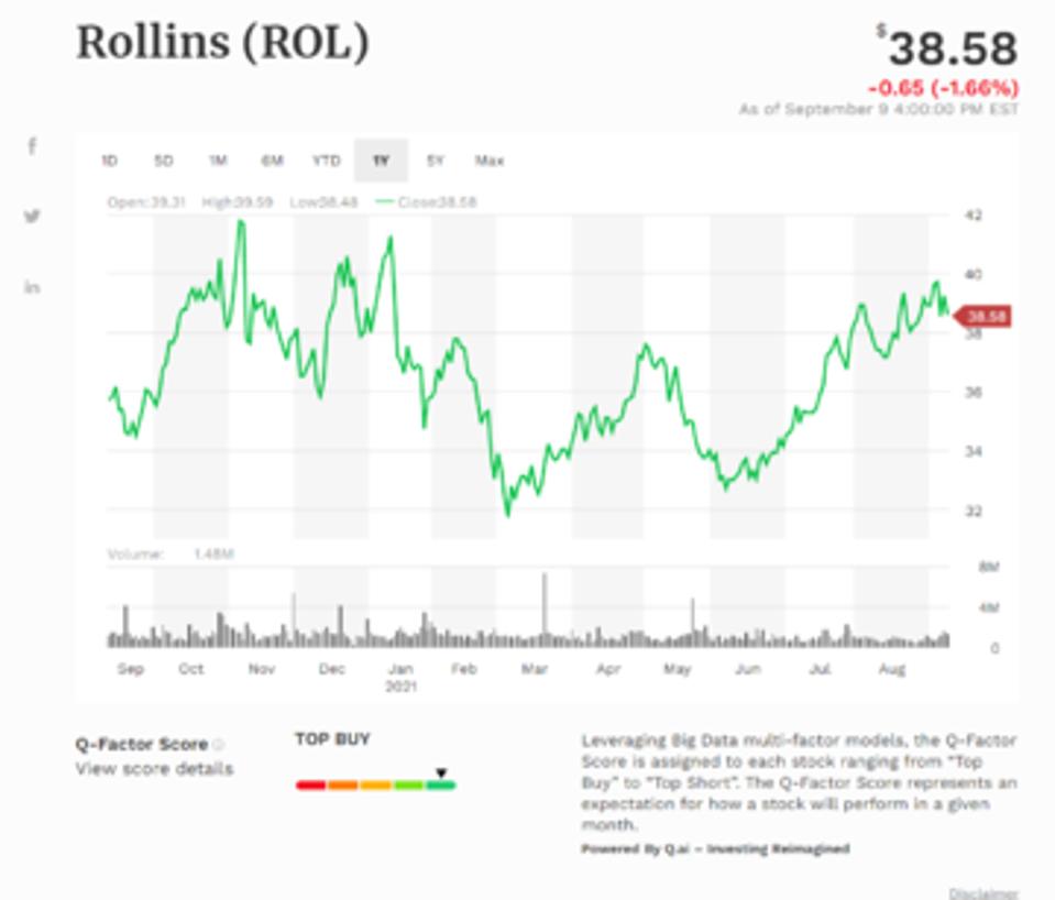 Rollins Inc is today’s next Top Buy. Rollins Inc