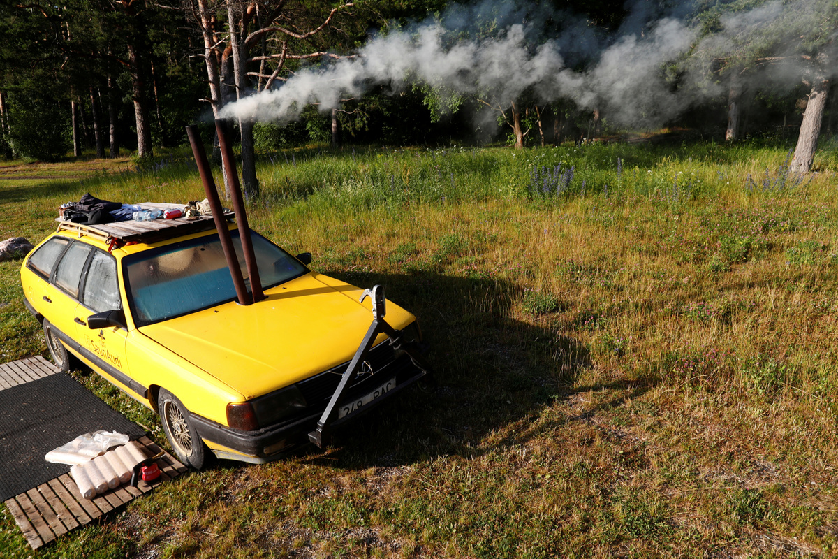 Maesalu, 29, got the idea to convert his car a couple of years ago, when he found out it would be too expensive to rent a sauna for his birthday party. He and some friends spent two weeks remodeling the vehicle into a working sauna: a SaunAudi, as he calls it.