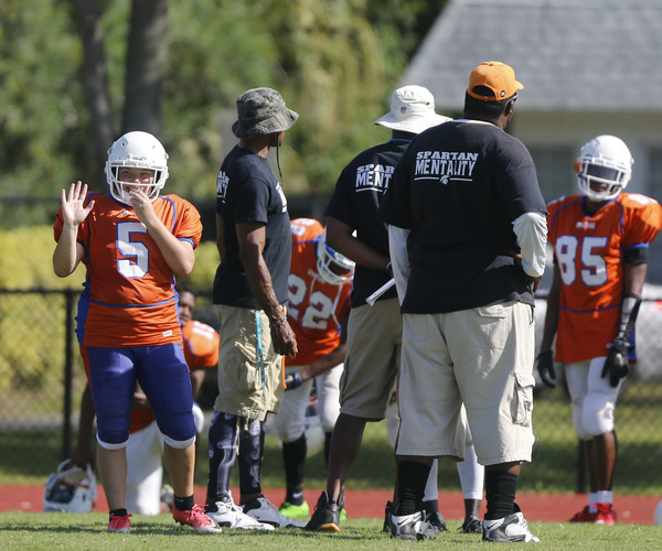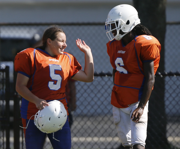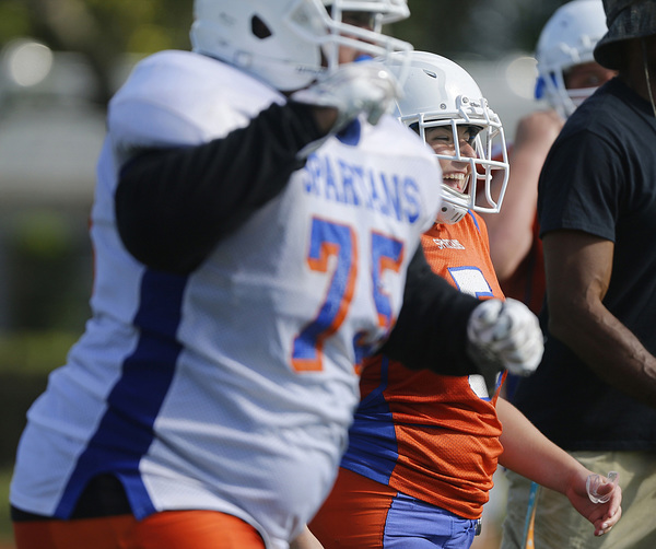 Last week's intra-squad scrimmage at Hollywood Hills High in Florida was the first tackle football game experience for Neher, who has been a quarterback for the girls' flag football team the past two seasons. She has been working and training with the Spartans throughout their offseason program.
