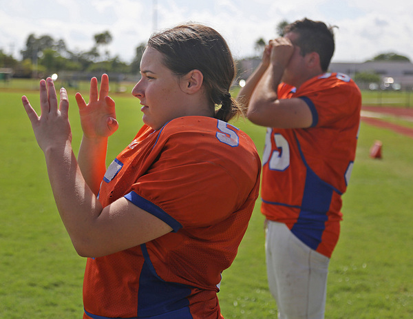Other girls have played football, such as South Plantation's Erin DiMeglio, who saw action in 2012 and became the first to play in a game in Florida. Pine Crest's Sofia Caro played running back and linebacker last season.