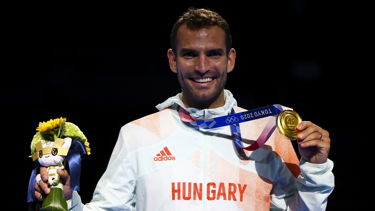 He took in the cheers from the volunteers, team members, and Olympic-related staff present in an otherwise empty venue and held the Hungarian flag aloft, while silver medallist Samele shrugged in resignation towards his team mates before a coach started to massage his sore leg.