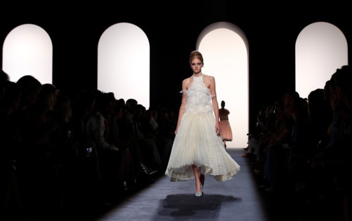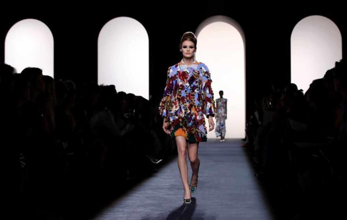 PARIS (Reuters) - Italian fashion label Fendi played with textures in its Haute Couture collection in Paris on Wednesday, overlaying see-through bodices with fur trimmings and creating shimmering, scaly skirts.