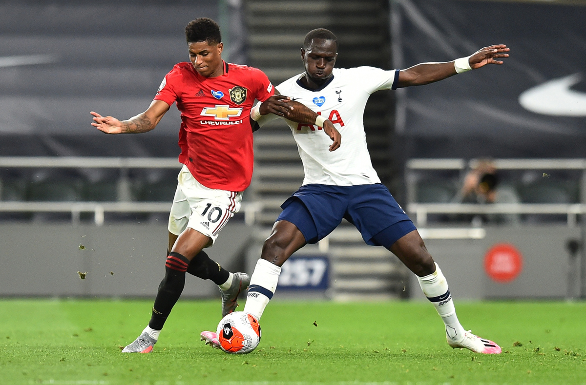 Soccer Football - Premier League - Tottenham Hotspur v Manchester United - Tottenham Hotspur Stadium, London, Britain - June 19, 2020 Tottenham Hotspur's Moussa Sissoko in action with Manchester United's Marcus Rashford, as play resumes behind closed doors following the outbreak of the coronavirus disease (COVID-19) Glyn Kirk/Pool via REUTERS