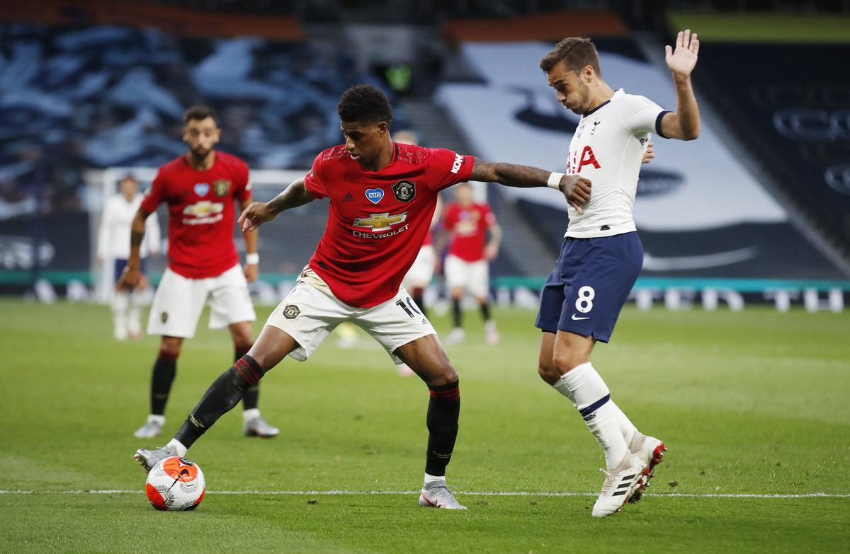 Soccer Football - Premier League - Tottenham Hotspur v Manchester United - Tottenham Hotspur Stadium, London, Britain - June 19, 2020 Manchester United's Victor Lindelof in action with Tottenham Hotspur's Harry Kane, as play resumes behind closed doors following the outbreak of the coronavirus disease (COVID-19) Glyn Kirk/Pool via REUTERS Soccer Football - Premier League - Tottenham Hotspur v Manchester United - Tottenham Hotspur Stadium, London, Britain - June 19, 2020 Tottenham Hotspur's Eric Dier after sustaining an injury, as play resumes behind closed doors following the outbreak of the coronavirus disease (COVID-19) REUTERS / Matthew Childs / Pool Soccer Football - Premier League - Tottenham Hotspur v Manchester United - Tottenham Hotspur Stadium, London, Britain - June 19, 2020 Tottenham Hotspur's Serge Aurier in action with Manchester United's Scott McTominay, as play resumes behind closed doors following the outbreak of the coronavirus disease (COVID-19) Glyn Kirk/Pool via REUTERS Soccer Football - Premier League - Tottenham Hotspur v Manchester United - Tottenham Hotspur Stadium, London, Britain - June 19, 2020 Manchester United's Marcus Rashford in action with Tottenham Hotspur's Harry Winks, as play resumes behind closed doors following the outbreak of the coronavirus disease (COVID-19) REUTERS / Matthew Childs / PoolSoccer Football - Premier League - Tottenham Hotspur v Manchester United - Tottenham Hotspur Stadium, London, Britain - June 19, 2020 Tottenham Hotspur's Eric Dier in action with Manchester United's Anthony Martial, as play resumes behind closed doors following the outbreak of the coronavirus disease (COVID-19) Glyn Kirk/Pool via REUTERS Soccer Football - Premier League - Tottenham Hotspur v Manchester United - Tottenham Hotspur Stadium, London, Britain - June 19, 2020 Tottenham Hotspur's Harry Kane in action, as play resumes behind closed doors following the outbreak of the coronavirus disease (COVID-19) REUTERS / Matthew Childs / Pool Soccer Football - Premier League - Tottenham Hotspur v Manchester United - Tottenham Hotspur Stadium, London, Britain - June 19, 2020 Tottenham Hotspur's Son Heung-min in action with Manchester United's Anthony Martial, as play resumes behind closed doors following the outbreak of the coronavirus disease (COVID-19) REUTERS / Matthew Childs / Pool Soccer Football - Premier League - Tottenham Hotspur v Manchester United - Tottenham Hotspur Stadium, London, Britain - June 19, 2020 Tottenham Hotspur's Steven Bergwijn scores their first goal, as play resumes behind closed doors following the outbreak of the coronavirus disease (COVID-19) Shaun Botterill/Pool via REUTERS Soccer Football - Premier League - Tottenham Hotspur v Manchester United - Tottenham Hotspur Stadium, London, Britain - June 19, 2020 Tottenham Hotspur's Serge Aurier in action, as play resumes behind closed doors following the outbreak of the coronavirus disease (COVID-19) Glyn Kirk/Pool via REUTERSSoccer Football - Premier League - Tottenham Hotspur v Manchester United - Tottenham Hotspur Stadium, London, Britain - June 19, 2020 Manchester United's Marcus Rashford with Tottenham Hotspur's Steven Bergwijn after the match, as play resumes behind closed doors following the outbreak of the coronavirus disease (COVID-19) Shaun Botterill/Pool via REUTERS Soccer Football - Premier League - Tottenham Hotspur v Manchester United - Tottenham Hotspur Stadium, London, Britain - June 19, 2020 Tottenham Hotspur's Moussa Sissoko in action with Manchester United's Marcus Rashford, as play resumes behind closed doors following the outbreak of the coronavirus disease (COVID-19) Glyn Kirk/Pool via REUTERS Soccer Football - Premier League - Tottenham Hotspur v Manchester United - Tottenham Hotspur Stadium, London, Britain - June 19, 2020 Tottenham Hotspur's Steven Bergwijn in action with Manchester United's Mason Greenwood, as play resumes behind closed doors following the outbreak of the coronavirus disease (COVID-19) Shaun Botterill/Pool via REUTERS Soccer Football - Premier League - Tottenham Hotspur v Manchester United - Tottenham Hotspur Stadium, London, Britain - June 19, 2020 Tottenham Hotspur's Hugo Lloris makes a save, as play resumes behind closed doors following the outbreak of the coronavirus disease (COVID-19) REUTERS / Matthew Childs / Pool