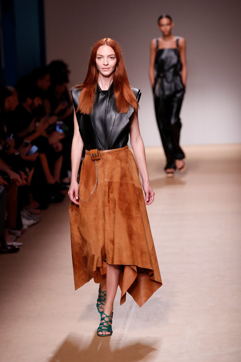 Leather, as usual, reigned supreme on the catwalk, featuring in different shapes, finishes and used in clothes as well as accessories.
