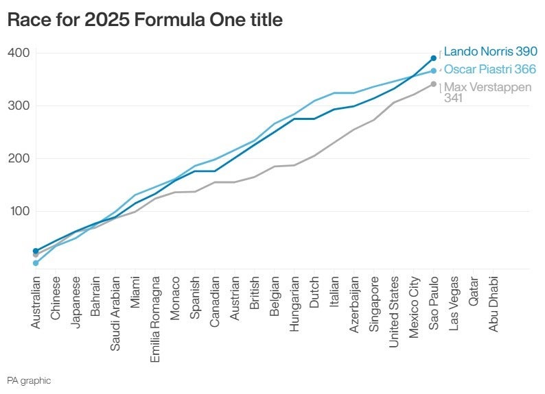 Norris extends his lead to 24 points 📈#F1 #BrazilGP pic.twitter.com/juh6zgXv4n
