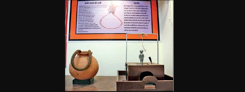 The 95-year-old rope used for hanging prisoners awarded death penalty is on exhibit. It was used for hanging over 50 prisoners