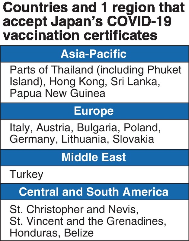Only 15 countries and one region, as of Friday, were accepting COVID-19 vaccination certificates issued by the Japanese government. This is because many governments have responded reluctantly to Japan for its strict border control measures that in principle ban the new entry of foreign travelers.