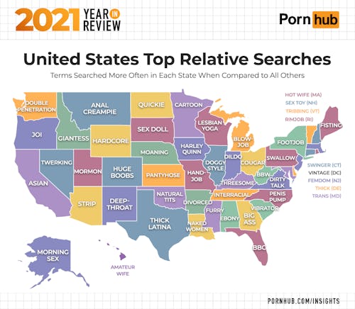 It’s difficult to summarize porn habits across the globe, given how disparate tastes are in various parts of the world, but Pornhub did its best to find a few trends. The top defining search term of 2021, based on worldwide Pornhub searches, is “hentai.” For the uninitiated, that’s anime and manga porn. Dr. Laurie Betito, director of Pornhub’s Sexual Wellness Center, attributes hentai’s popularity to the visual stimulation, storylines, and fantastical nature of the porn.