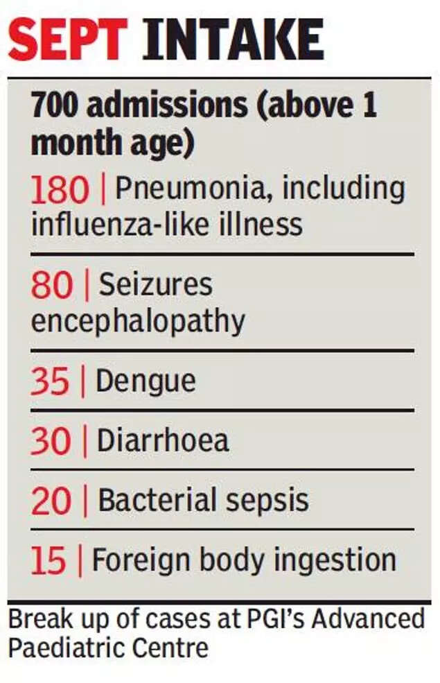 Out of 700 admissions of babies during September at PGI, pneumonia and influenza-like illnesses were the highest with 180 cases. In addition, Government Medical College and Hospital (GMCH), Sector 32, saw 15-20 cases during September of snake bites in children, the highest in a single month in the last decade.
