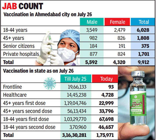 AHMEDABAD: The city on Monday vaccinated less than 10,000 people, one of the lowest numbers for a single day. AMC officials said there was uncertainty about vaccination on Tuesday, as doses were not received till 9.30pm on Monday.