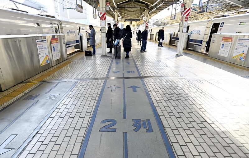 Few people were seen on the Shinkansen platforms at JR Tokyo Station on Saturday morning. According to JR, the number of reservations for seats aboard the high-speed trains has seen a significant decrease compared to a typical year. The number of services has not been reduced, however, as a means of avoiding the crowding that might come about if the number of available trains were decreased. As of 10 a.m. on Saturday, between 10% and 30% of non-reserved seats on the Tohoku, Yamagata, Joetsu and Hokuriku Shinkansen lines were used.