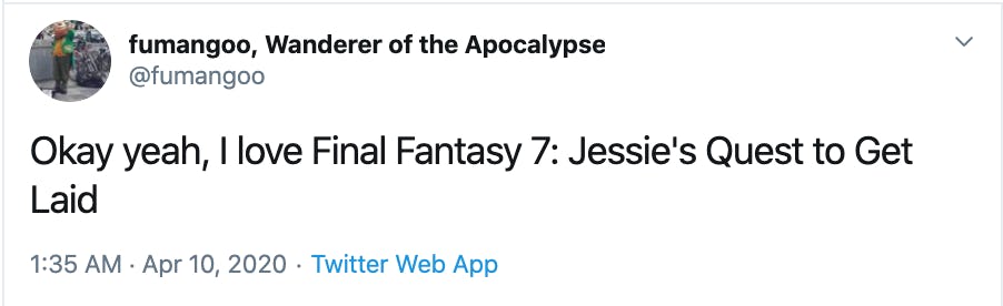 Corey Plante: My answer’s obviously Jessie, but in the Tifa-Aerith debate, I’m also pro-Tifa. Broken people with shared trauma overcoming it together makes for relatable, emotional storytelling. I’m excited to watch it evolve over time and I CANNOT wait to see whatever this Chapter 14 moment is.