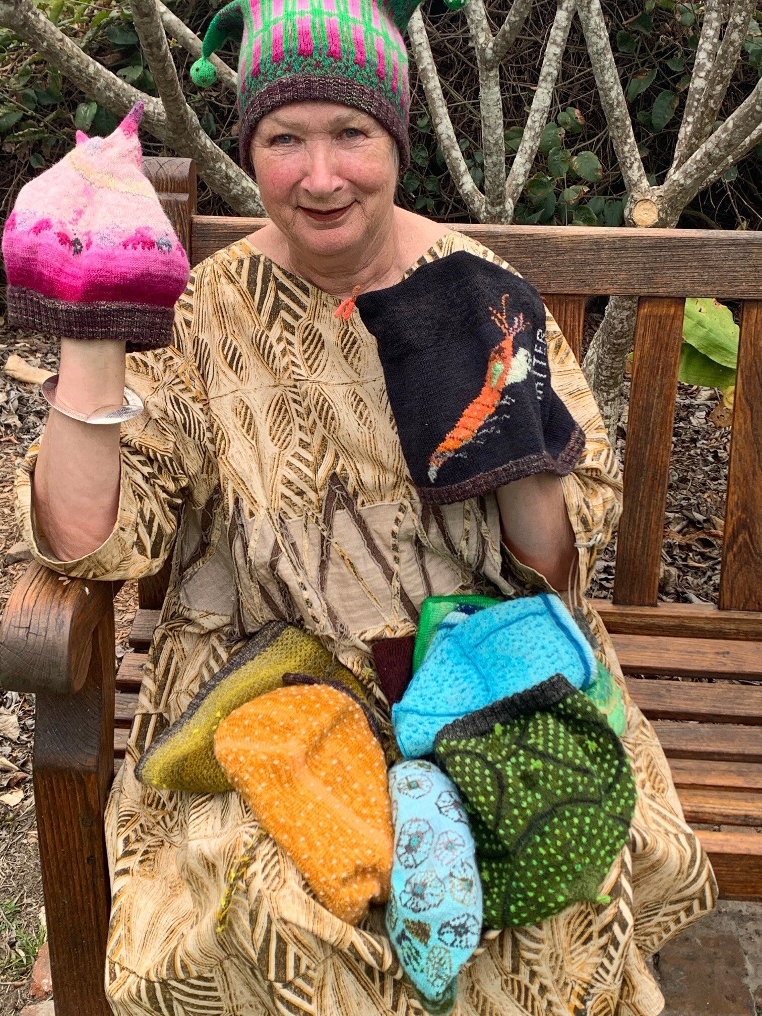 The experienced textile artist, who lives at Waitui on the NSW Mid North Coast, then embarked on a long process to create the beanies.