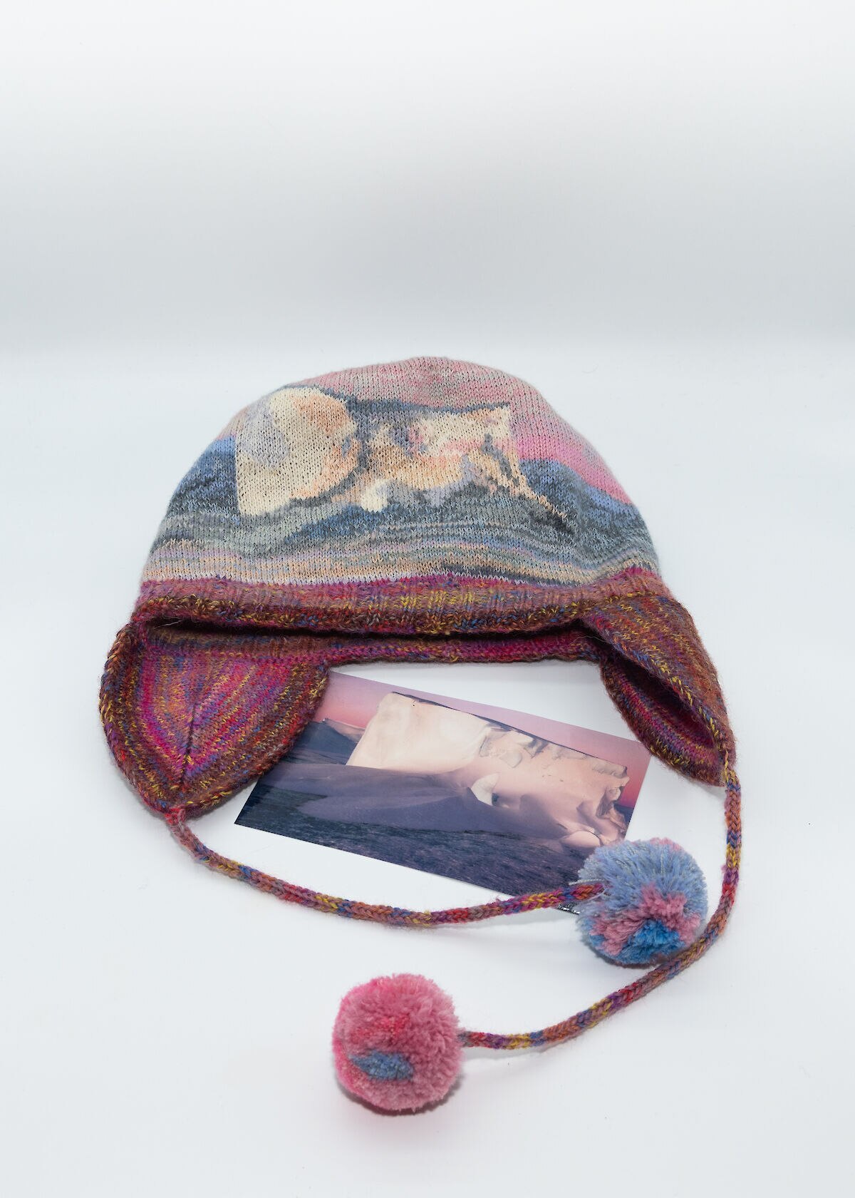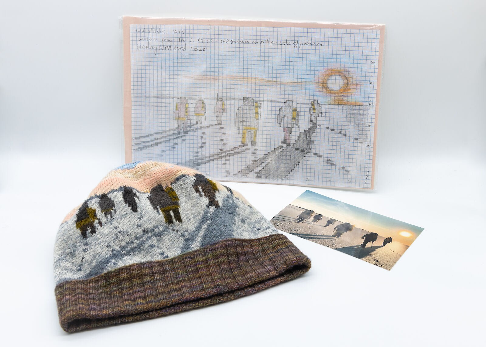 She drew up a pattern for each hat, plotting the relevant image on graph paper and measuring out the number of stitches needed for each square.