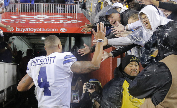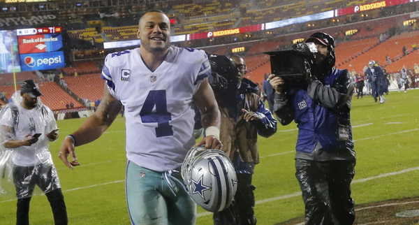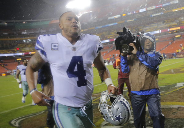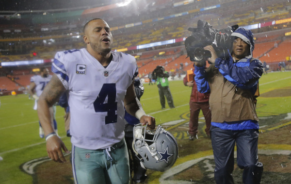Prescott opened six for six and completed nine of his first 10 passes for 105 yards. But ended up, 14 of 22 for 143 yards in the constant rain. It was his second career game with fewer than 150 passing yards.
