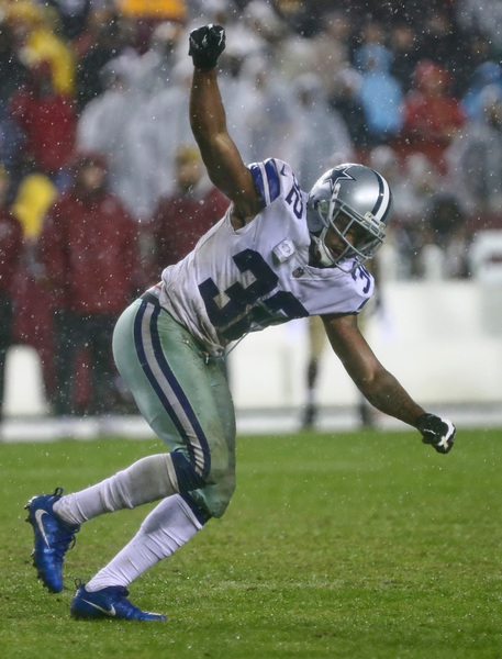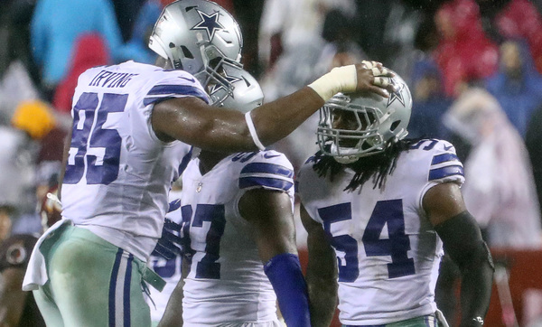 Defensive end David Irving's tipped pass was returned 21 yards to the end zone by Byron Jones with 21 seconds left on the clock to empty the remaining rain-soaked fans out of the stands.