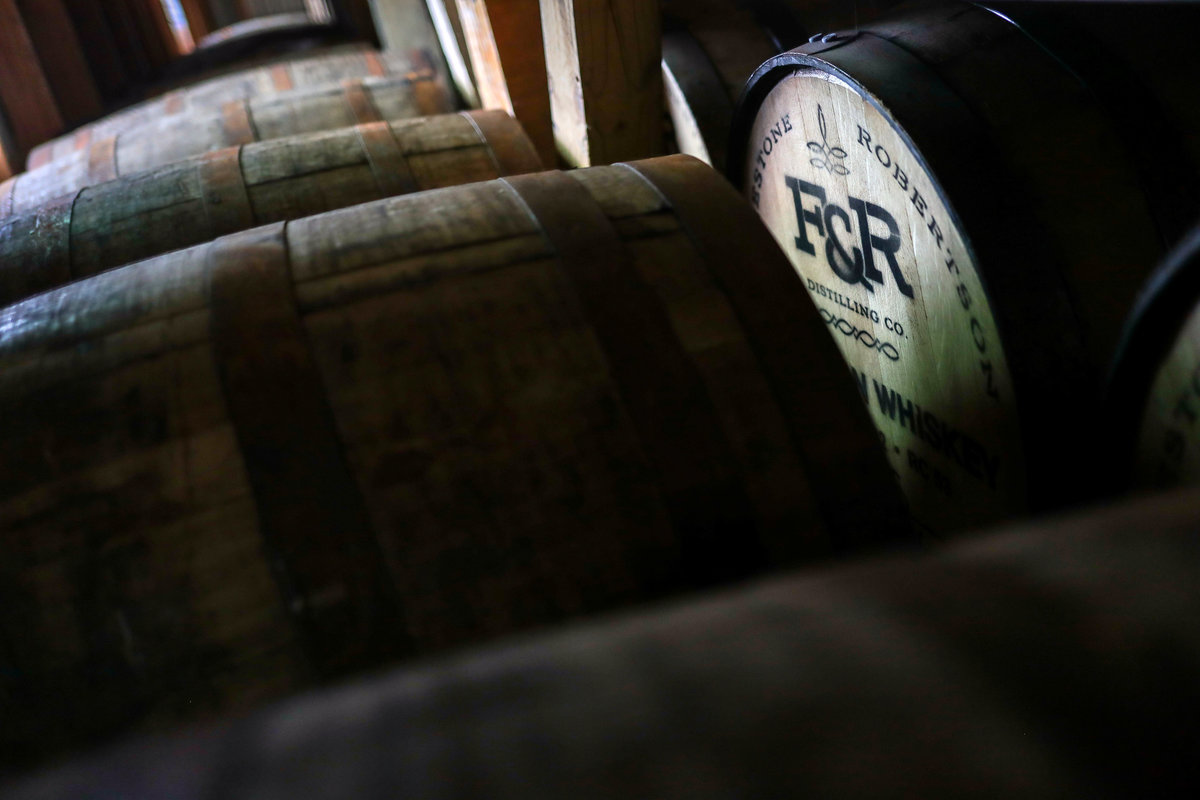 Barrels full of whiskey rest inside the Rickhouse, or barrel barn, at the Firestone & Robertson (F&R) Whiskey Ranch in Forth Worth, Texas, U.S., May 24, 2018. Picture taken May 24, 2018. REUTERS/Adrees Latif