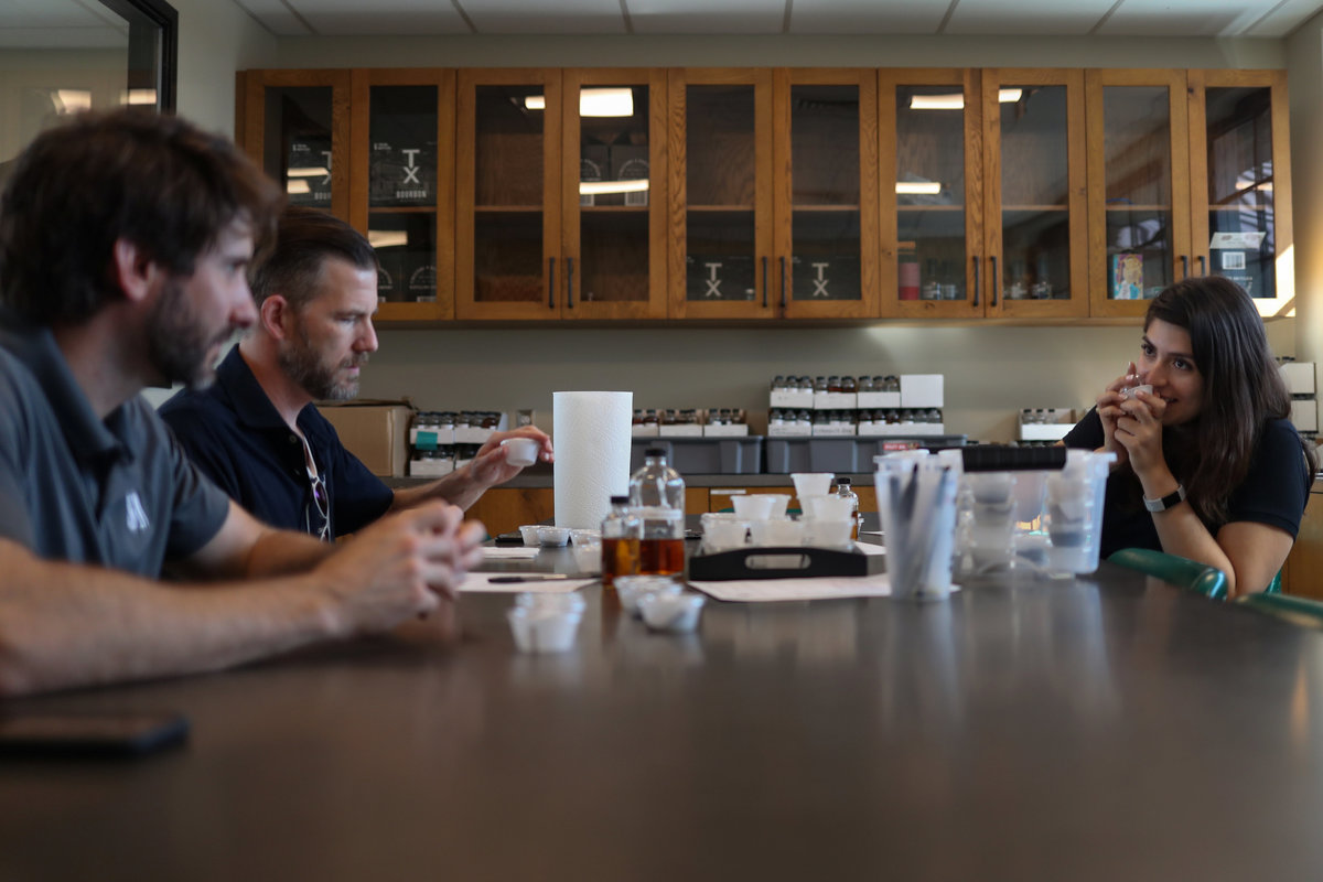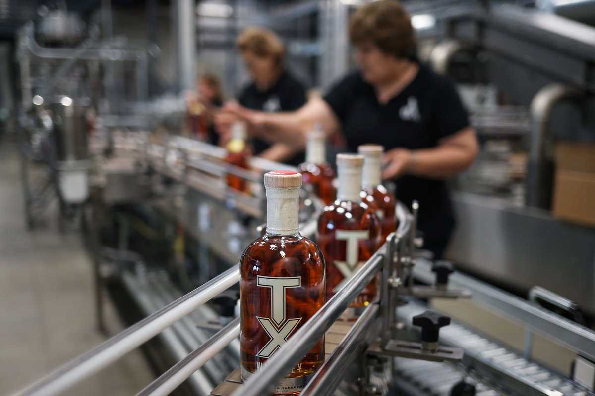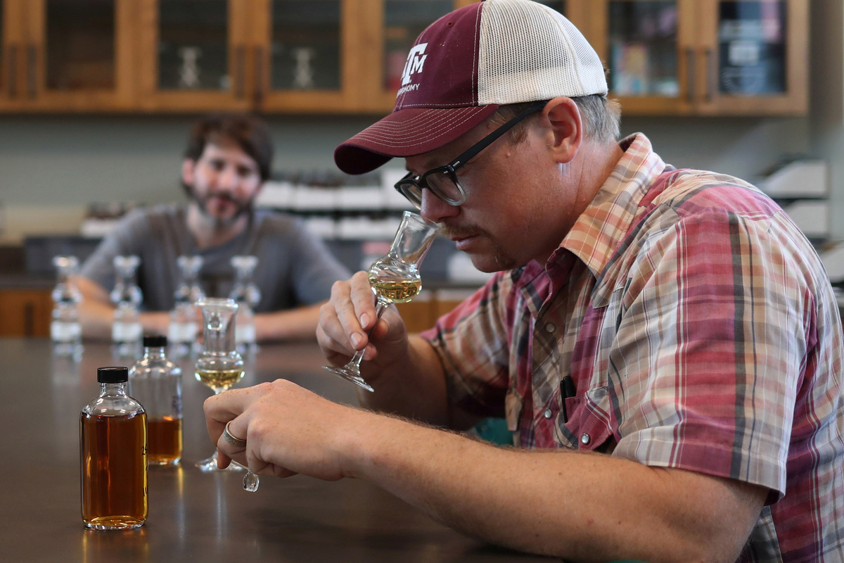 Ph.D. candidates at Texas A&M University cover the shoots of corn plants, so pollination can be controlled, in a research field in College Station, Texas, U.S., May 23, 2018. Picture taken on May 23, 2018. REUTERS/Adrees LatifAn aerial view shows a corn research field where a trial is being conducted on a particular variety of corn in College Station, Texas, U.S., May 22, 2018. Picture taken on May 22, 2018. REUTERS/Adrees LatifA Ph.D. candidate at Texas A&M University checks plants while walking through a corn research field in College Station, Texas, U.S., May 23, 2018. Picture taken on May 23, 2018. REUTERS/Adrees LatifSeth Murray, an associate professor at Texas A&M University (R) senses whiskey varieties at the Firestone & Robertson (F&R) Whiskey Ranch in Forth Worth, Texas, U.S., May 23, 2018. Picture taken on May 23, 2018. REUTERS/Adrees LatifThe leather tops of TX Whiskey and TX Bourbon bottles are photographed at the Firestone & Robertson (F&R) Whiskey Ranch in Forth Worth, Texas, U.S., May 24, 2018. Picture taken May 24, 2018. REUTERS/Adrees LatifSeth Murray, an associate professor at Texas A&M University in the Department of Soil and Crop Science, displays yellow corn seeds (R) from commercially planted corn originating from the Midwest, next to corn seeds (L) planted for whisky in College Station, Texas, U.S., May 23, 2018. Picture taken on May 23, 2018. REUTERS/Adrees LatifThe Forth Worth skyline is seen from the Firestone & Robertson (F&R) Whiskey Ranch in Texas, U.S., May 24, 2018. Picture taken May 24, 2018. REUTERS/Adrees LatifEmployees package TX Whiskey at the Firestone & Robertson (F&R) Whiskey Ranch in Forth Worth, Texas, U.S., May 24, 2018. Picture taken May 24, 2018. REUTERS/Adrees LatifAn employee places a label on a bottle of TX Whiskey at the Firestone & Robertson (F&R) Whiskey Ranch in Forth Worth, Texas, U.S., May 24, 2018. Picture taken May 24, 2018. REUTERS/Adrees LatifEmployees move cases of TX Whiskey at the Firestone & Robertson (F&R) Whiskey Ranch in Forth Worth, Texas, U.S., May 24, 2018. Picture taken May 24, 2018. REUTERS/Adrees LatifA barrel adorns the entrance to the Firestone & Robertson (F&R) Whiskey Ranch in Forth Worth, Texas, U.S., May 24, 2018. Picture taken May 24, 2018. REUTERS/Adrees LatifA man monitors the bottling line inside the Firestone & Robertson (F&R) Whiskey Ranch in Forth Worth, Texas, U.S., May 24, 2018. Picture taken on May 24, 2018. REUTERS/Adrees LatifSigns are seen at the entrance to the Firestone & Robertson (F&R) Whiskey Ranch in Forth Worth, Texas, U.S., May 24, 2018. Picture taken May 24, 2018. REUTERS/Adrees LatifWhite Dog rye and wheated bourbon sit atop a barrel at the Firestone & Robertson (F&R) Whiskey Ranch in Forth Worth, Texas, U.S., May 23, 2018. Picture taken May 23, 2018. REUTERS/Adrees LatifThe Firestone & Robertson (F&R) Whiskey Ranch is photographed in Forth Worth,Texas, U.S., May 24, 2018. Picture taken May 24, 2018. REUTERS/Adrees LatifWhite Dog bourbon is filled into barrels at the Firestone & Robertson (F&R) Whiskey Ranch in Forth Worth, Texas, U.S., May 23, 2018. Picture taken May 23, 2018. REUTERS/Adrees LatifReferences for sensory analyze training are photographed in the sensory lab at the Firestone & Robertson (F&R) Whiskey Ranch in Forth Worth, Texas, U.S., May 24, 2018. Picture taken May 24, 2018. REUTERS/Adrees LatifRob Arnold, head distiller at Firestone & Robertson (F&R), displays milled corn, or grist, in Forth Worth, Texas, U.S., May 23, 2018. Picture taken May 23, 2018. REUTERS/Adrees Latif(L-R) Head distiller Rob Arnold, Lead Mixologist Jason Shelly and Whiskey Scientist Ale Ochoa take part in a sensory analyze training session at the Firestone & Robertson (F&R) Whiskey Ranch in Forth Worth, Texas, U.S., May 24, 2018. Picture taken May 24, 2018. REUTERS/Adrees LatifThe control panel of a Human Machine Interface is photographed at the Firestone & Robertson (F&R) Whiskey Ranch in Forth Worth, Texas, U.S., May 24, 2018. Picture taken May 24, 2018. REUTERS/Adrees LatifHead distiller Rob Arnold looks toward a Human Machine Interface as he opens the manway to a cooker during the mashing process at the Firestone & Robertson (F&R) Whiskey Ranch in Forth Worth, Texas, U.S., May 24, 2018. Picture taken May 24, 2018. REUTERS/Adrees LatifCarbon dioxide bubbles rise from mash being fermented into distillers beer at at the Firestone & Robertson (F&R) Whiskey Ranch in Forth Worth, Texas, U.S., May 24, 2018. Picture taken May 24, 2018. REUTERS/Adrees LatifMilled corn, or grist, is seen through a manway as it's dropped into heat and water during the mashing process at the Firestone & Robertson (F&R) Whiskey Ranch in Forth Worth, Texas, U.S., May 24, 2018. Picture taken May 24, 2018. REUTERS/Adrees LatifRob Arnold, head distiller, samples White Dog whiskey at the Firestone & Robertson (F&R) Whiskey Ranch in Forth Worth, Texas, U.S., May 24, 2018. Picture taken May 24, 2018. REUTERS/Adrees LatifCo-founder Leonard Firestone opens passage to the beer still at the Firestone & Robertson (F&R) Whiskey Ranch in Forth Worth, Texas, U.S., May 24, 2018. Picture taken May 24, 2018. REUTERS/Adrees LatifWhiskey Scientist Ale Ochoa checks the pH level of beer at the Firestone & Robertson (F&R) Whiskey Ranch in Forth Worth, Texas, U.S., May 24, 2018. Picture taken May 24, 2018. REUTERS/Adrees Latif