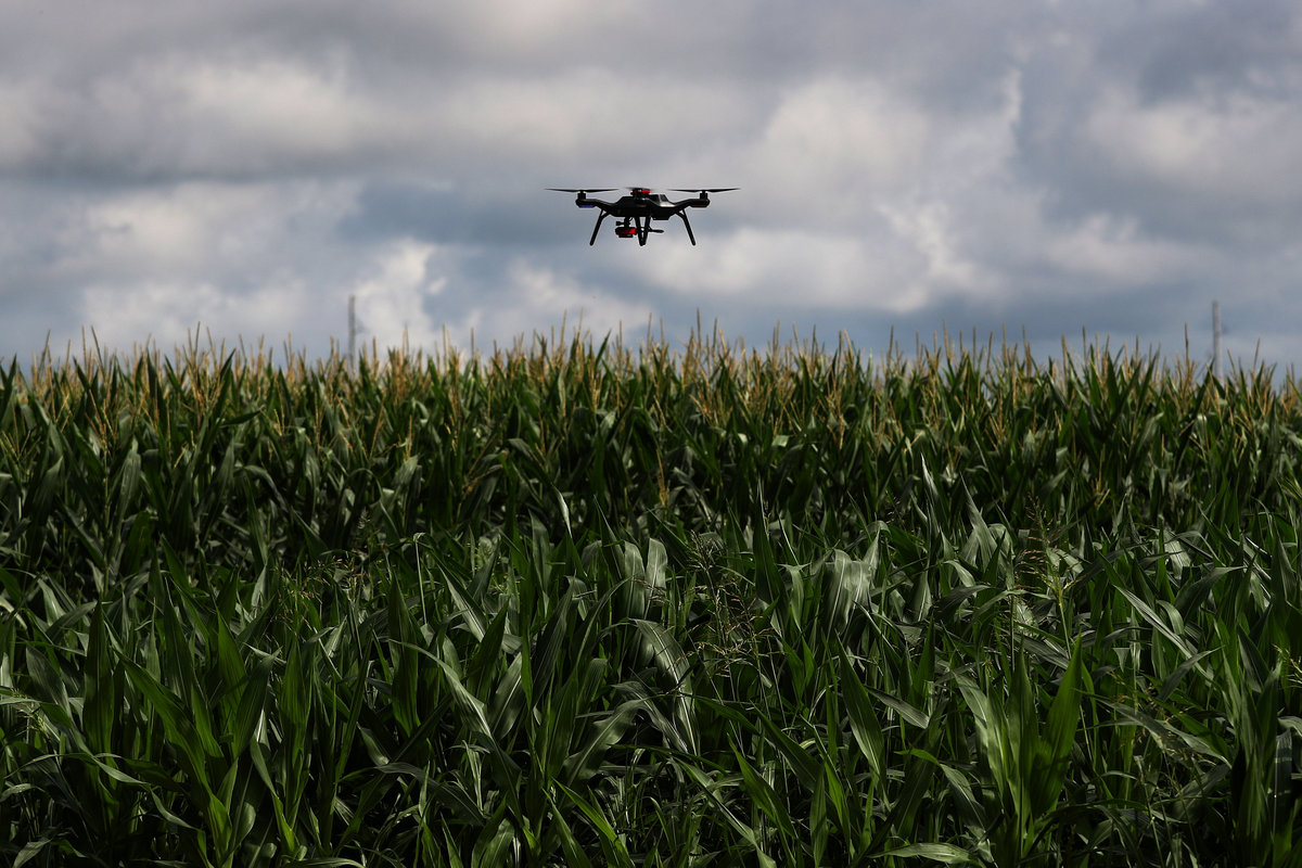 A drone is used to survey a corn research field in College Station, Texas, U.S., May 23, 2018. Picture taken May 23, 2018. REUTERS/Adrees Latif