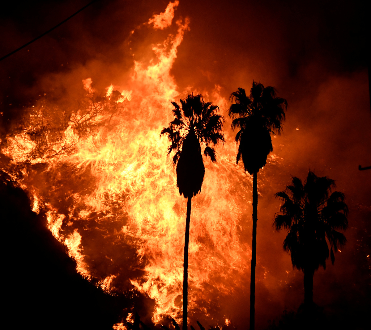 The Thomas fire was initially stoked by hot, dry Santa Ana winds blowing with rare hurricane force from the eastern desert, spreading flames across miles of drought-parched chaparral and brush in California's rugged coastal terrain.
