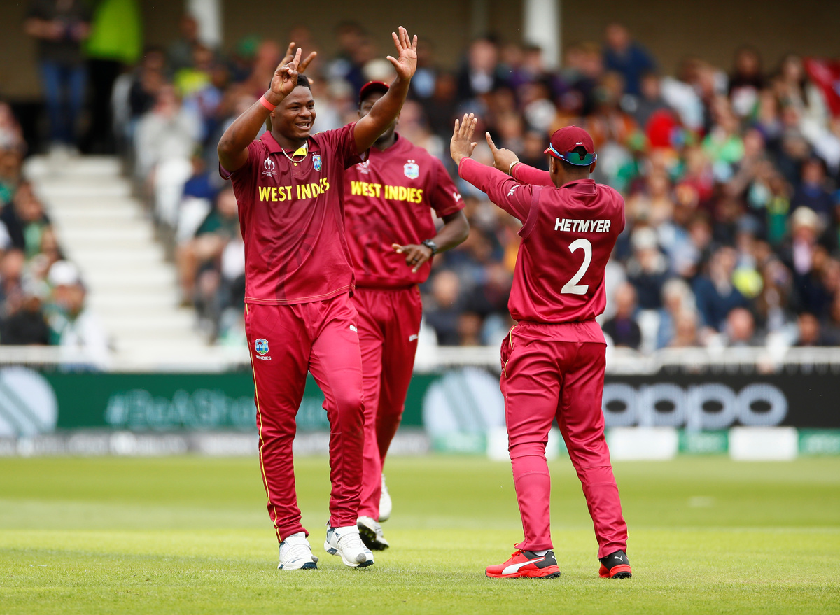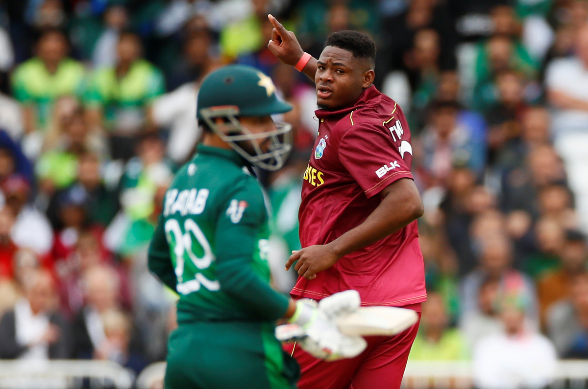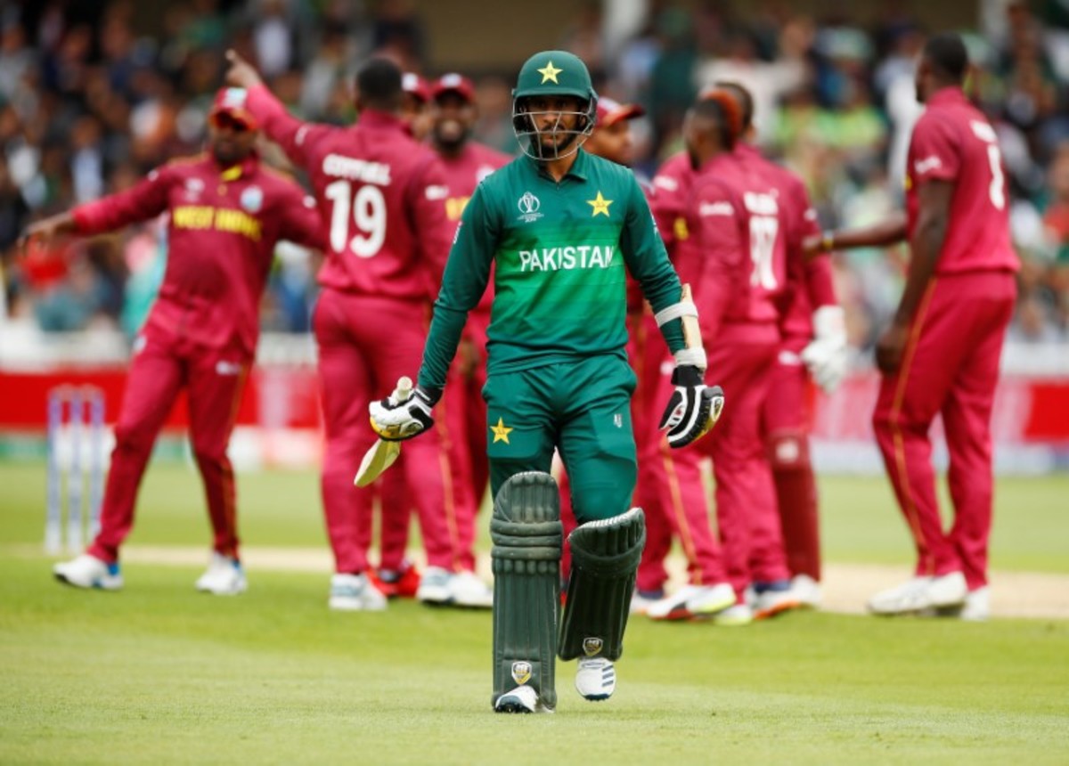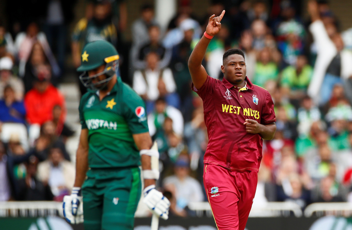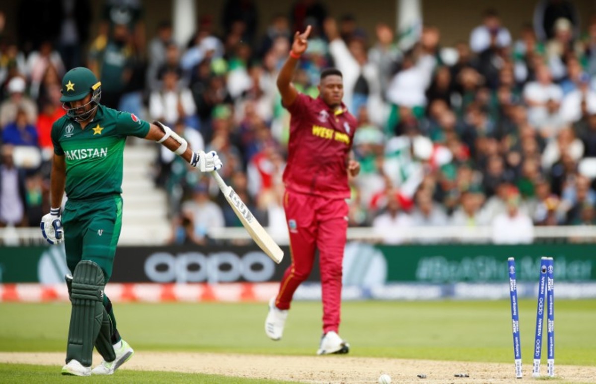 Cricket - ICC Cricket World Cup - West Indies v Pakistan - Trent Bridge, Nottingham, Britain - May 31, 2019 West Indies' Oshane Thomas takes the wicket of Pakistan's Wahab Riaz Action Images via Reuters/Jason CairnduffCricket - ICC Cricket World Cup - West Indies v Pakistan - Trent Bridge, Nottingham, Britain - May 31, 2019 Pakistan's Wahab Riaz hits a six Action Images via Reuters/Jason CairnduffCricket - ICC Cricket World Cup - West Indies v Pakistan - Trent Bridge, Nottingham, Britain - May 31, 2019 West Indies' Oshane Thomas celebrates with team mates after taking the wicket of Pakistan's Mohammad Hafeez Action Images via Reuters/Jason CairnduffCricket - ICC Cricket World Cup - West Indies v Pakistan - Trent Bridge, Nottingham, Britain - May 31, 2019 West Indies' Oshane Thomas appeals successfully for LBW to dismiss Pakistan's Shadab Khan Action Images via Reuters/Jason CairnduffCricket - ICC Cricket World Cup - West Indies v Pakistan - Trent Bridge, Nottingham, Britain - May 31, 2019 Pakistan's Hasan Ali looks dejected as he walks off after losing his wicket Action Images via Reuters/Jason CairnduffCricket - ICC Cricket World Cup - West Indies v Pakistan - Trent Bridge, Nottingham, Britain - May 31, 2019 Pakistan's Shadab Khan looks dejected as he walks off after being dismissed by LBW Action Images via Reuters/Jason Cairnduff