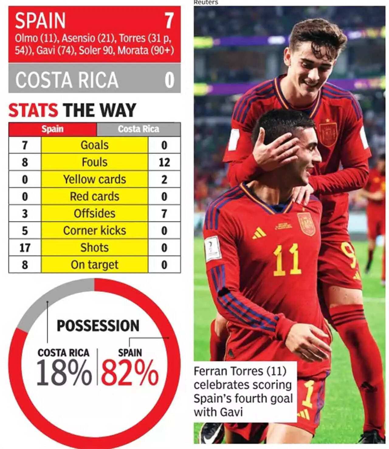 AL THUMAMA STADIUM (DOHA): If this was the Group of Death they said it was, then Spain was simply killing it. Either you'd die of boredom, or like Costa Rica, of sheer fatigue in trying to stay in the game without a feel of the ball because the other team, those ball-hogs just wouldn't let you have it. It all depended on which side of the idea you stood.