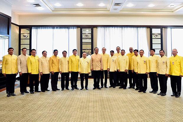 Prime Minister Prayut Chan-o-cha posed for photos with the 15 ministers during a break of the cabinet meeting on Tuesday.