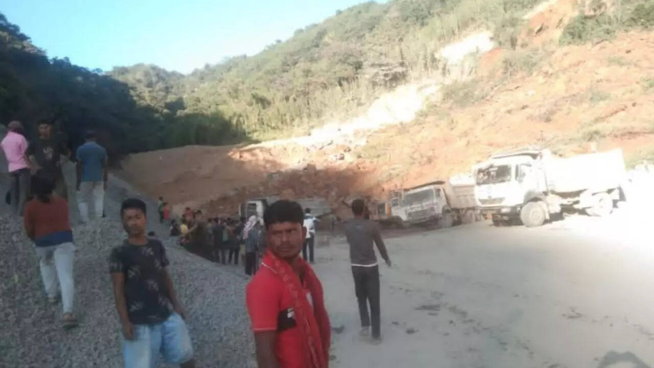 The massive landslip occurred when the workers resumed works after a lunchbreak, they said, adding that at least 15 workers, all of them non-locals, were feared trapped in the debris. The landslip also buried five Hitachi excavators, a big stone crusher and a drilling machine.