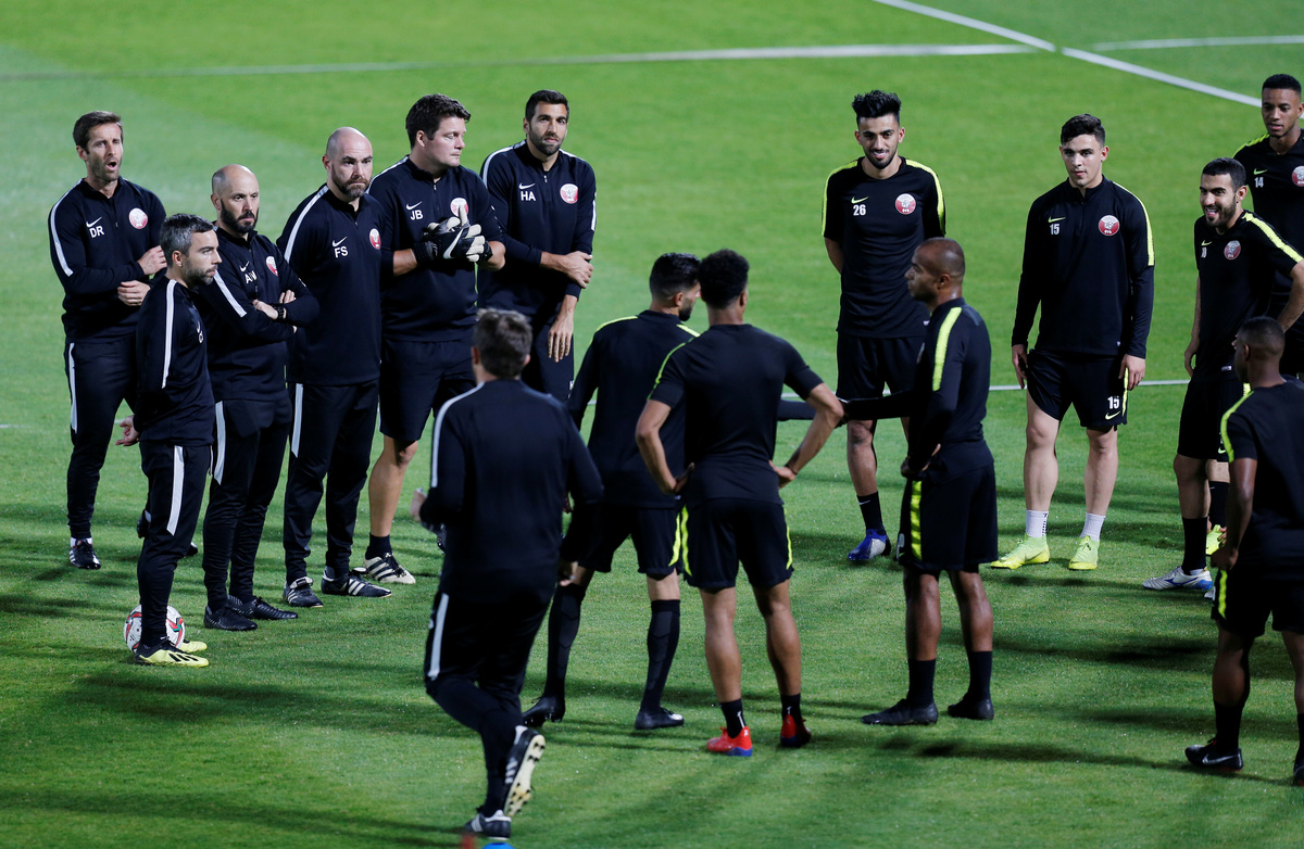 Soccer Football - AFC Asian Cup - Final - Japan Training - Abu Dhabi, United Arab Emirates - January 31, 2019 Japan's Tsukasa Shiotani during training REUTERS/Suhaib SalemSoccer Football - AFC Asian Cup - Final - Japan Training - Abu Dhabi, United Arab Emirates - January 31, 2019 Japan players during training REUTERS/Suhaib SalemSoccer Football - AFC Asian Cup - Final - Japan Training - Abu Dhabi, United Arab Emirates - January 31, 2019 Japan players during training REUTERS/Suhaib SalemSoccer Football - AFC Asian Cup - Final - Qatar Training - Armed Forces Stadium, Abu Dhabi, United Arab Emirates - January 31, 2019 Qatar coach Felix Sanchez Bas talks to his players during training REUTERS/Thaier Al-SudaniSoccer Football - AFC Asian Cup - Final - Qatar Training - Armed Forces Stadium, Abu Dhabi, United Arab Emirates - January 31, 2019 Qatar coach Felix Sanchez Bas during training REUTERS/Thaier Al-SudaniSoccer Football - AFC Asian Cup - Final - Qatar Training - Armed Forces Stadium, Abu Dhabi, United Arab Emirates - January 31, 2019 Qatar coach Felix Sanchez Bas during training REUTERS/Thaier Al-SudaniSoccer Football - AFC Asian Cup - Final - Qatar Training - Armed Forces Stadium, Abu Dhabi, United Arab Emirates - January 31, 2019 Qatar's Ali Afif during training REUTERS/Thaier Al-SudaniSoccer Football - AFC Asian Cup - Final - Qatar Training - Armed Forces Stadium, Abu Dhabi, United Arab Emirates - January 31, 2019 Qatar's Ali Afif during training REUTERS/Thaier Al-SudaniSoccer Football - AFC Asian Cup - Final - Qatar Training - Armed Forces Stadium, Abu Dhabi, United Arab Emirates - January 31, 2019 Qatar players during training REUTERS/Thaier Al-SudaniSoccer Football - AFC Asian Cup - Final - Qatar Training - Armed Forces Stadium, Abu Dhabi, United Arab Emirates - January 31, 2019 Qatar coach Felix Sanchez Bas talks to players during training REUTERS/Thaier Al-Sudani