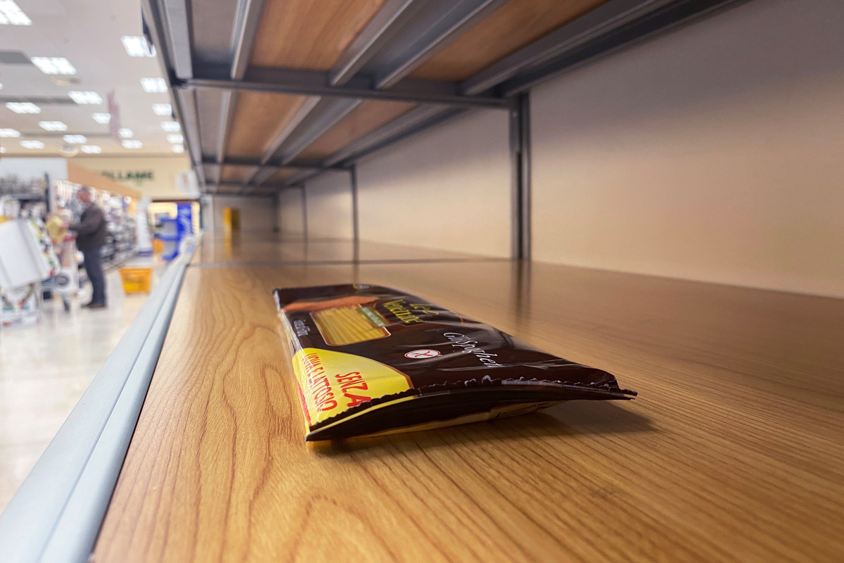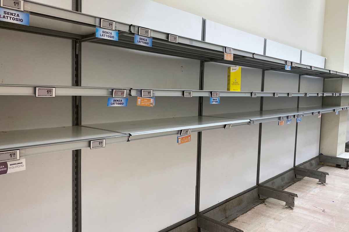 Italian shares tumbled more than 5%, the biggest daily drop in almost four years, on worries the flare-up could cause a recession, while worried residents emptied supermarket shelves to stock up on essentials.
