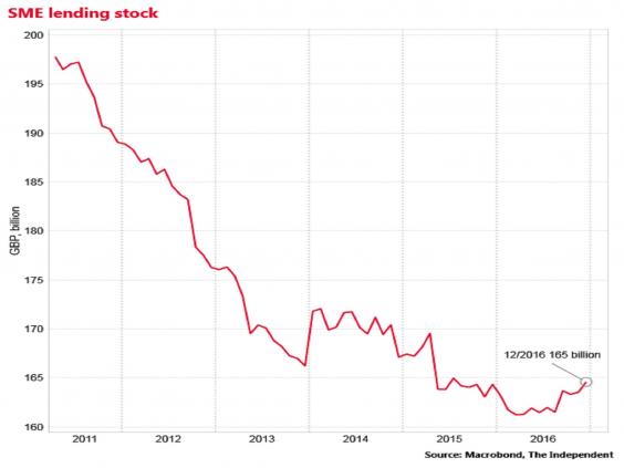 However, the stock of SME loans has continued to fall for most of the past six years, and now stands at £165bn, down from £198bn in 2011.