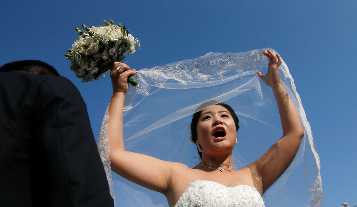 "This is a beautiful country. We love the traditional ceremony," bridegroom Wei Ying Nang, 28, told Reuters after the wedding, standing beside his wife, who was dressed in a white wedding frock while he wore a suit.