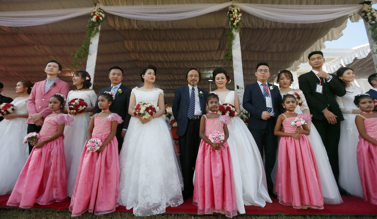 COLOMBO (Reuters) - Fifty couples from China tied the knot in the Sri Lankan capital on Sunday in a mass wedding ceremony, conducted in the island's Buddhist traditions, as the island aims to woo more tourists.