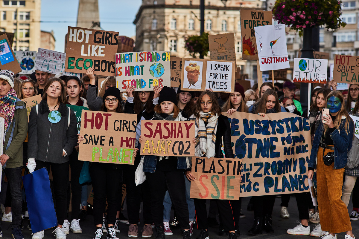 "The planet is getting hotter than my imaginary boyfriend," read a poster held by a teenager in Thailand.