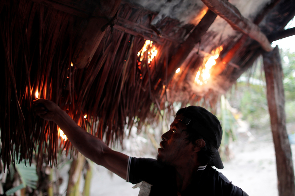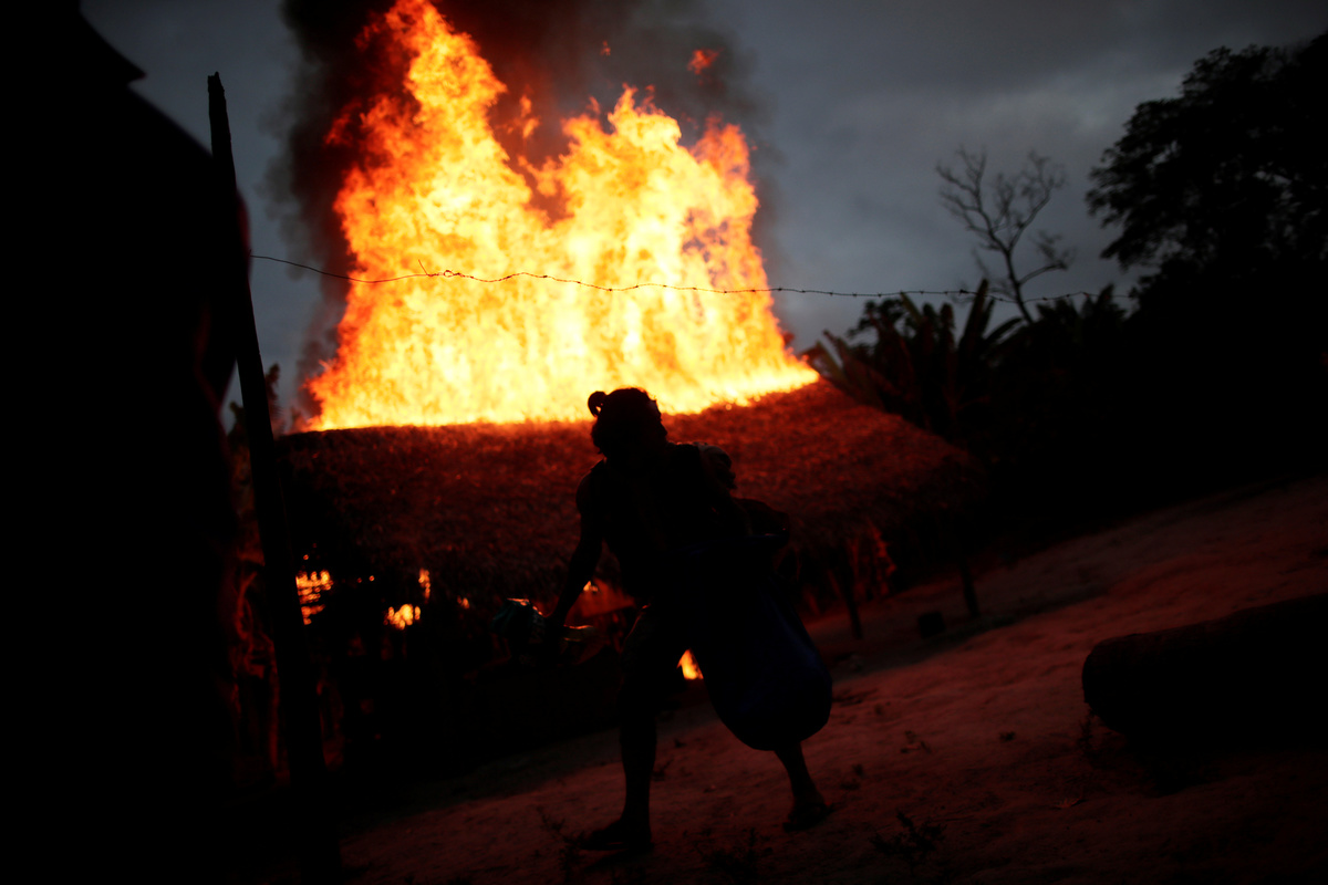 FILE PHOTO: A Guajajara Indian "forest guardian" sets fire to a loggers camp on Arariboia indigenous land near the city of Amarante, Maranhao state, Brazil, September 12, 2019. REUTERS/Ueslei Marcelino