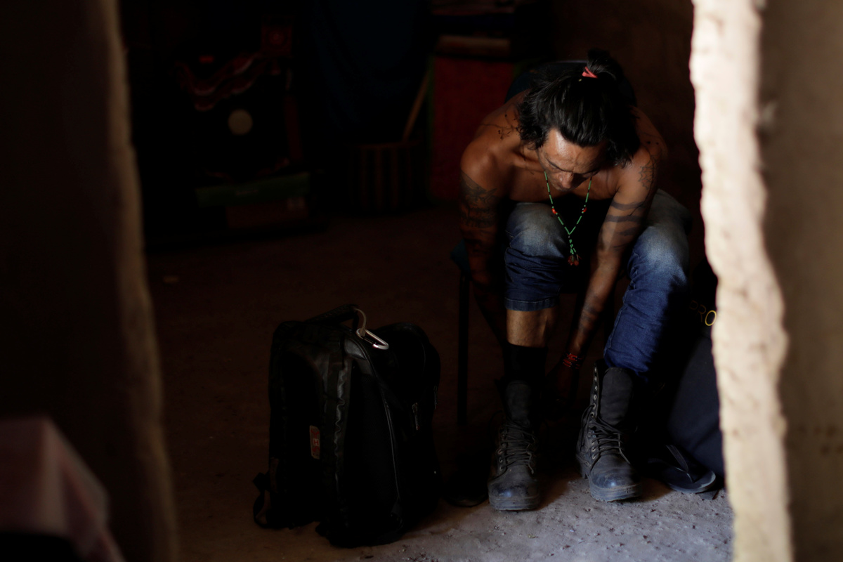 FILE PHOTO: A Guajajara Indian "forest guardian" paints his face whilst on Arariboia indigenous land near the city of Amarante, Maranhao state, Brazil, September 10, 2019. REUTERS/Ueslei Marcelino