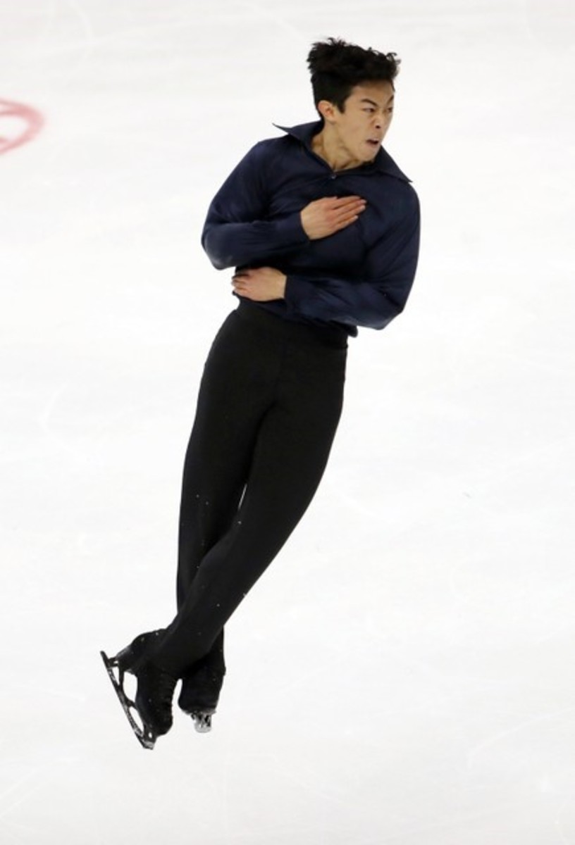 Chen, the final skater of the night, fell during one jump and had to put his hand on the ice to prevent another tumble during a routine that earned him a disappointing score of 171.76, which was still the second highest of the free skate.