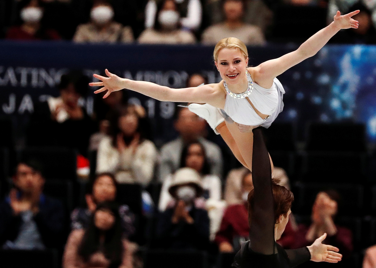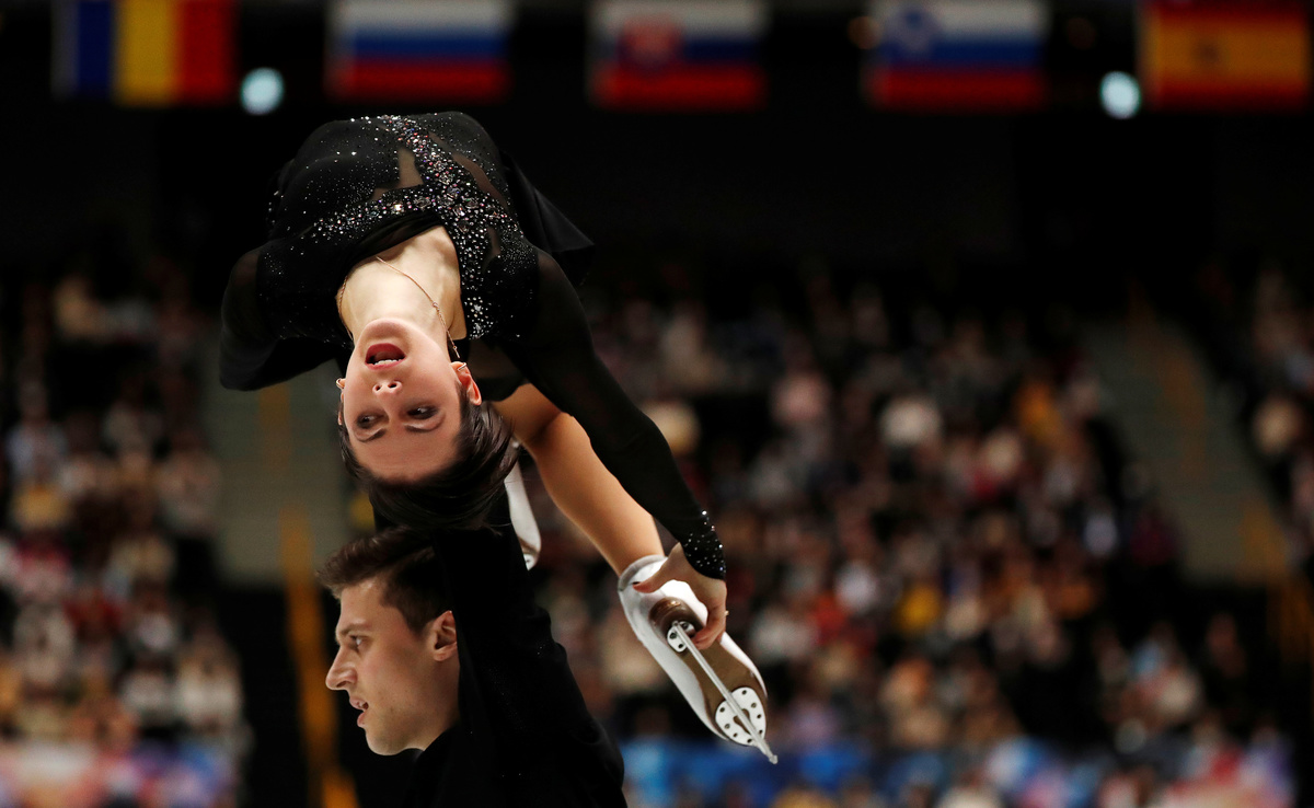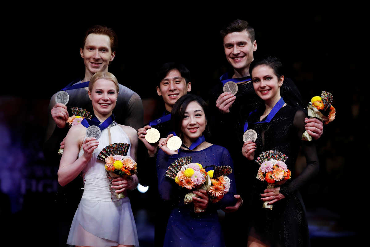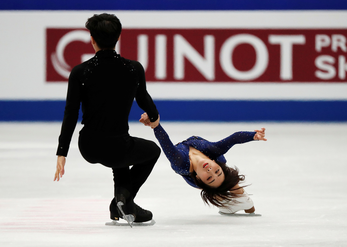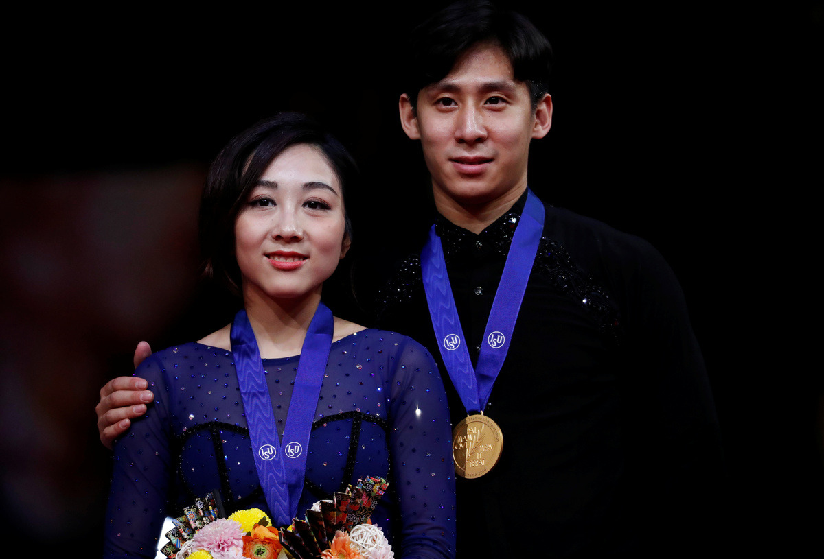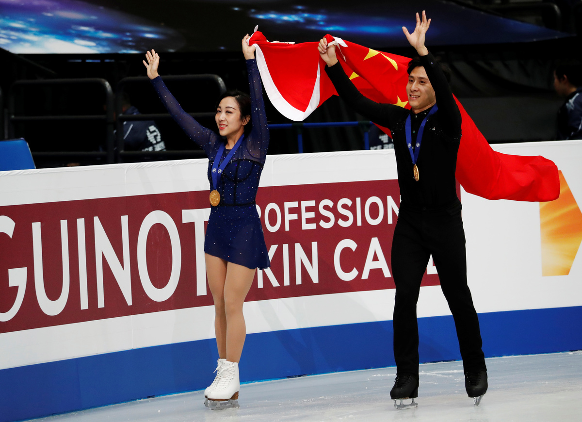 Earlier on Thursday, China's Olympic silver medallists Sui Wenjing and Han Cong took the pairs skating crown after a breathtaking free skate.