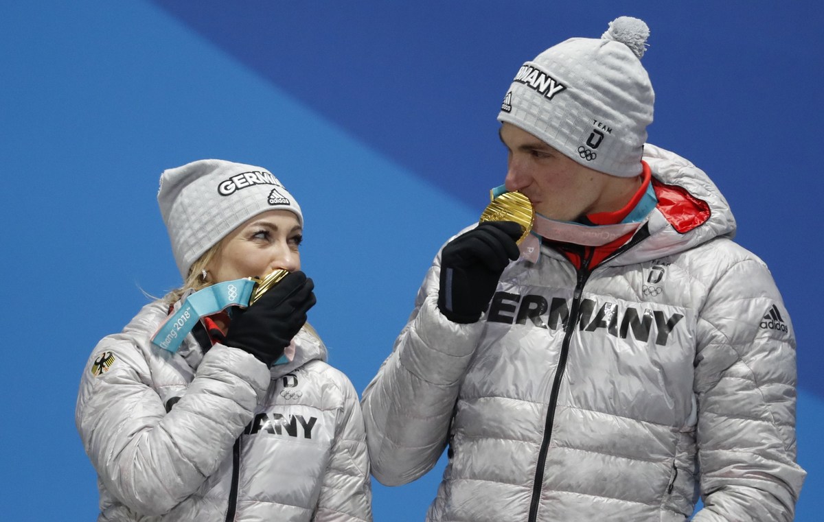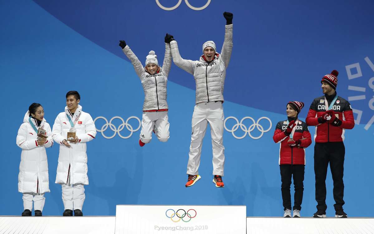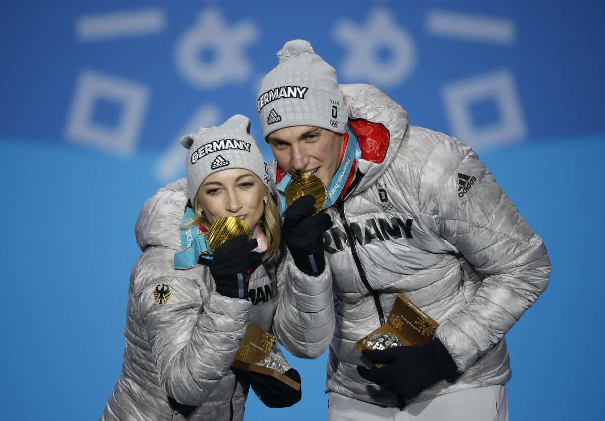 GANGNEUNG, South Korea (Reuters) - Aljona Savchenko and Bruno Massot wrapped themselves in German flags and skated around the ice after wining the Olympic gold medal on Thursday.