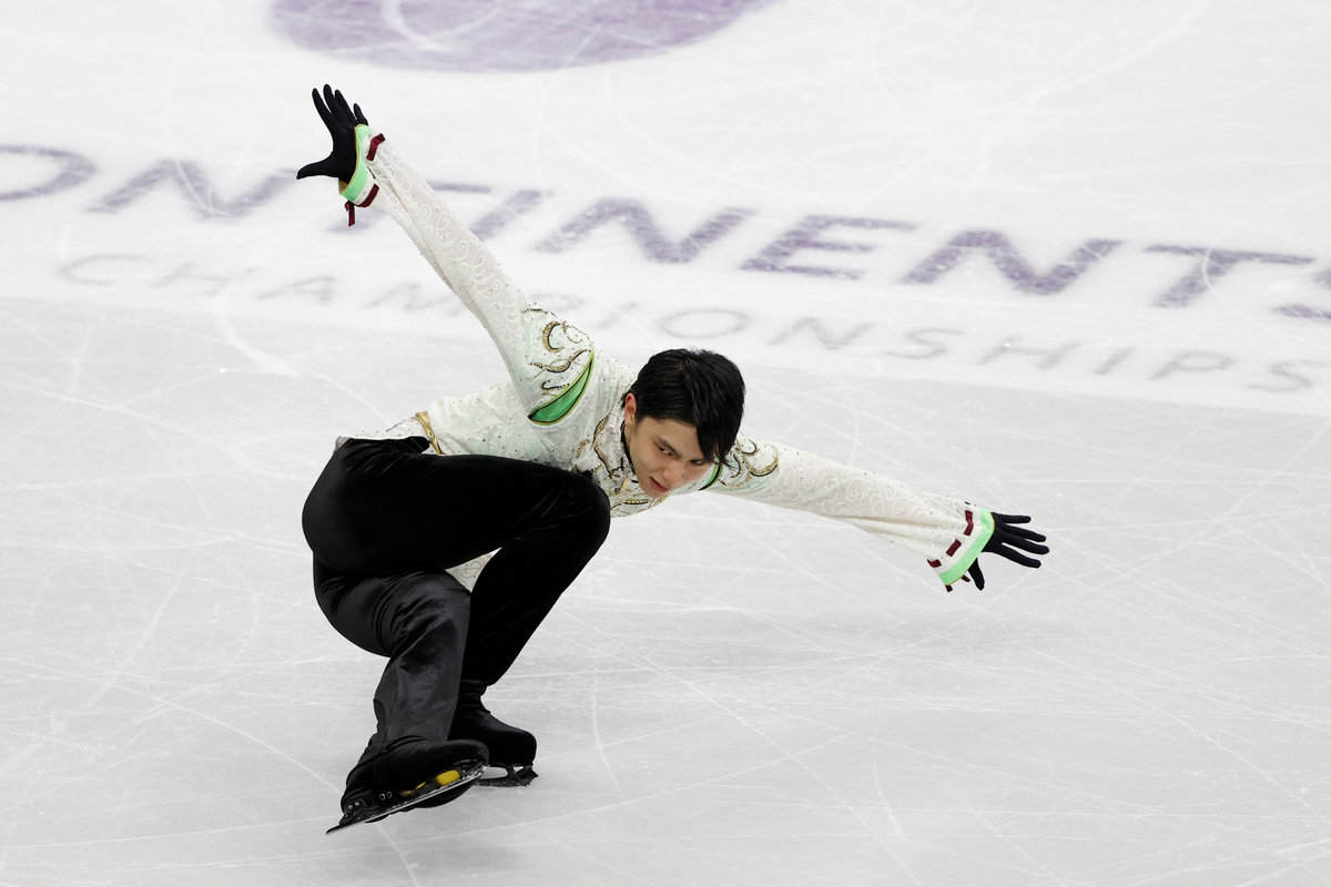 The 25-year-old, who set a world record score in the short programme on Friday, performed a quad Salchow, a quad toe-Euler-triple Salchow, a triple Axel and a triple flip in his skate to "Seimei".