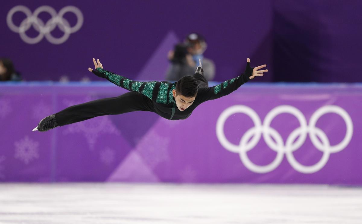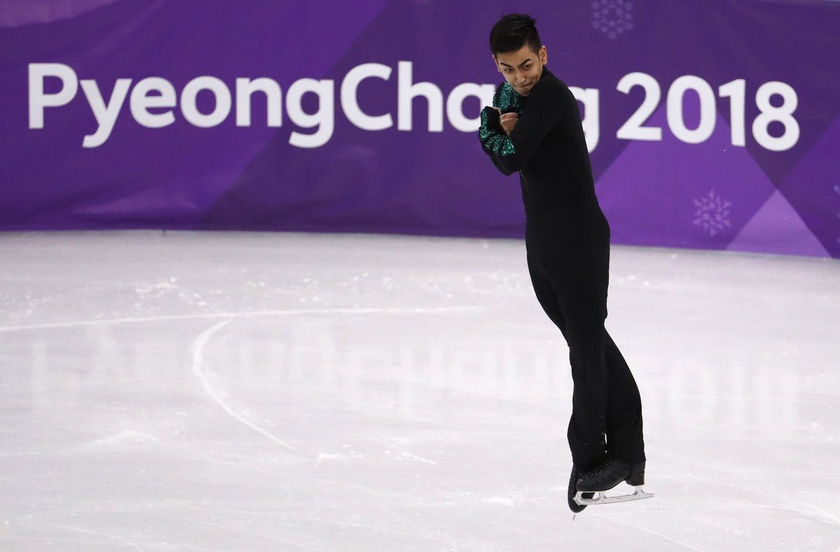 He said he was satisfied with his skate, in which he cleanly landed a triple Axel and several other triples, though with a score of 55.56 he won't pose a medal threat.