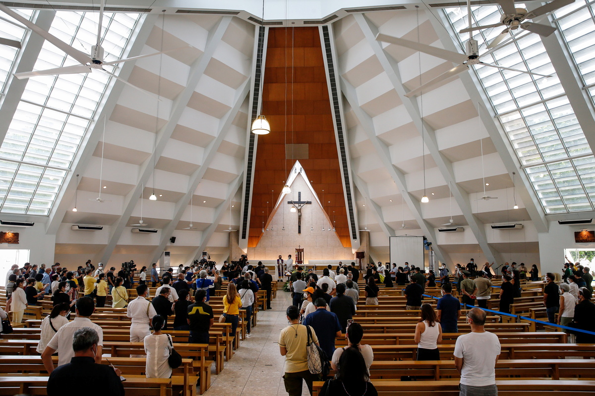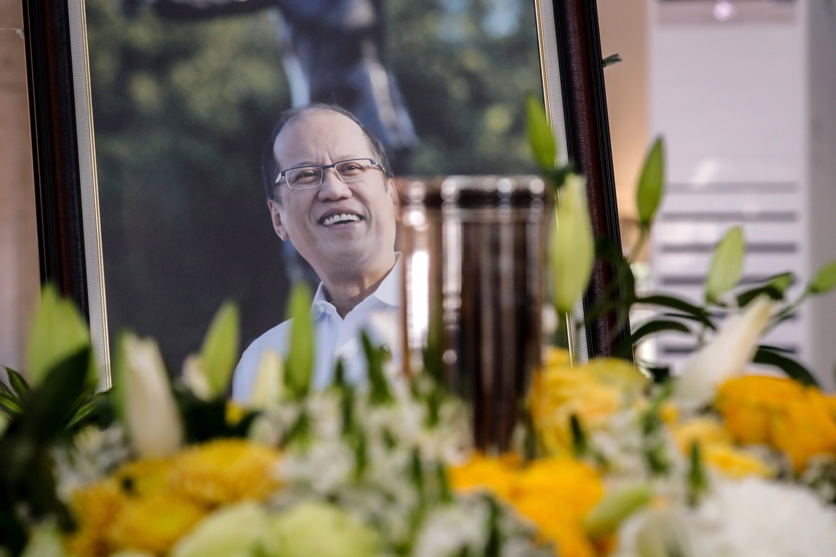 Hundreds of mourners in black and white, some also wearing yellow - the colour associated with the Aquino family and a 1986 revolution that toppled a dictator - ribbons and face masks, attended a funeral mass and burial ceremony.