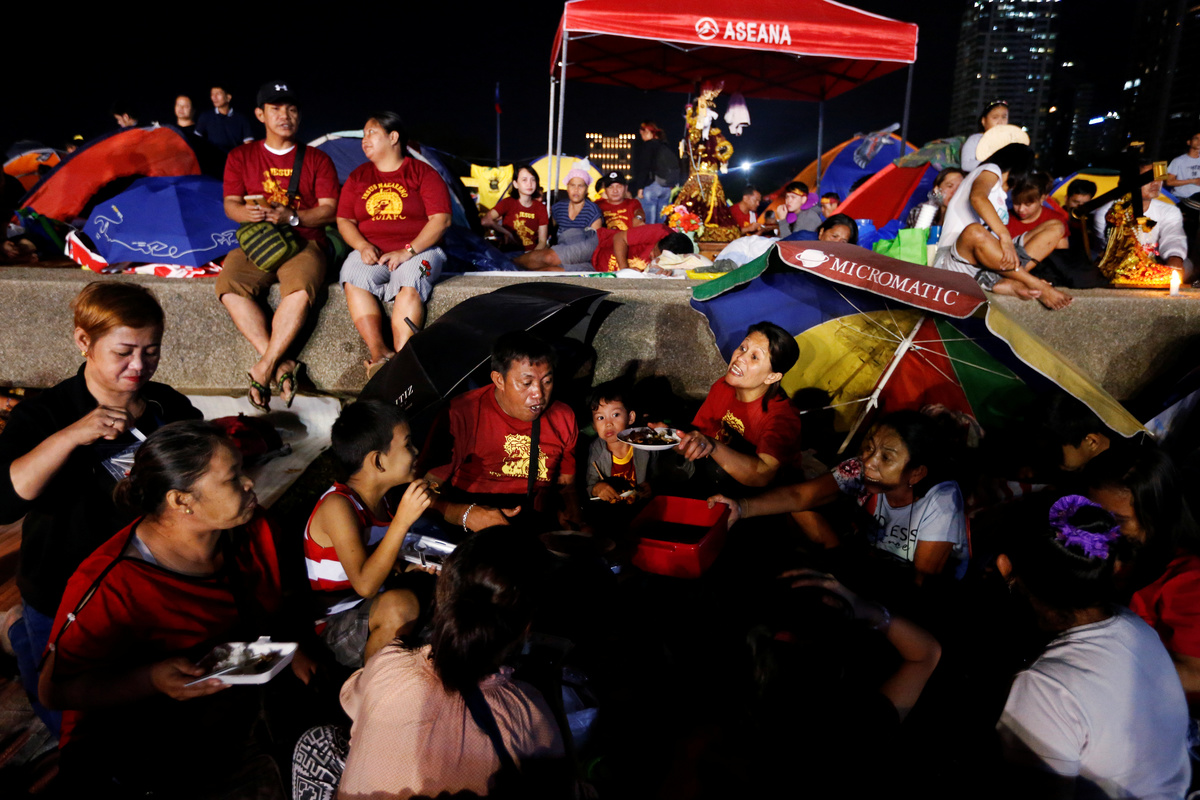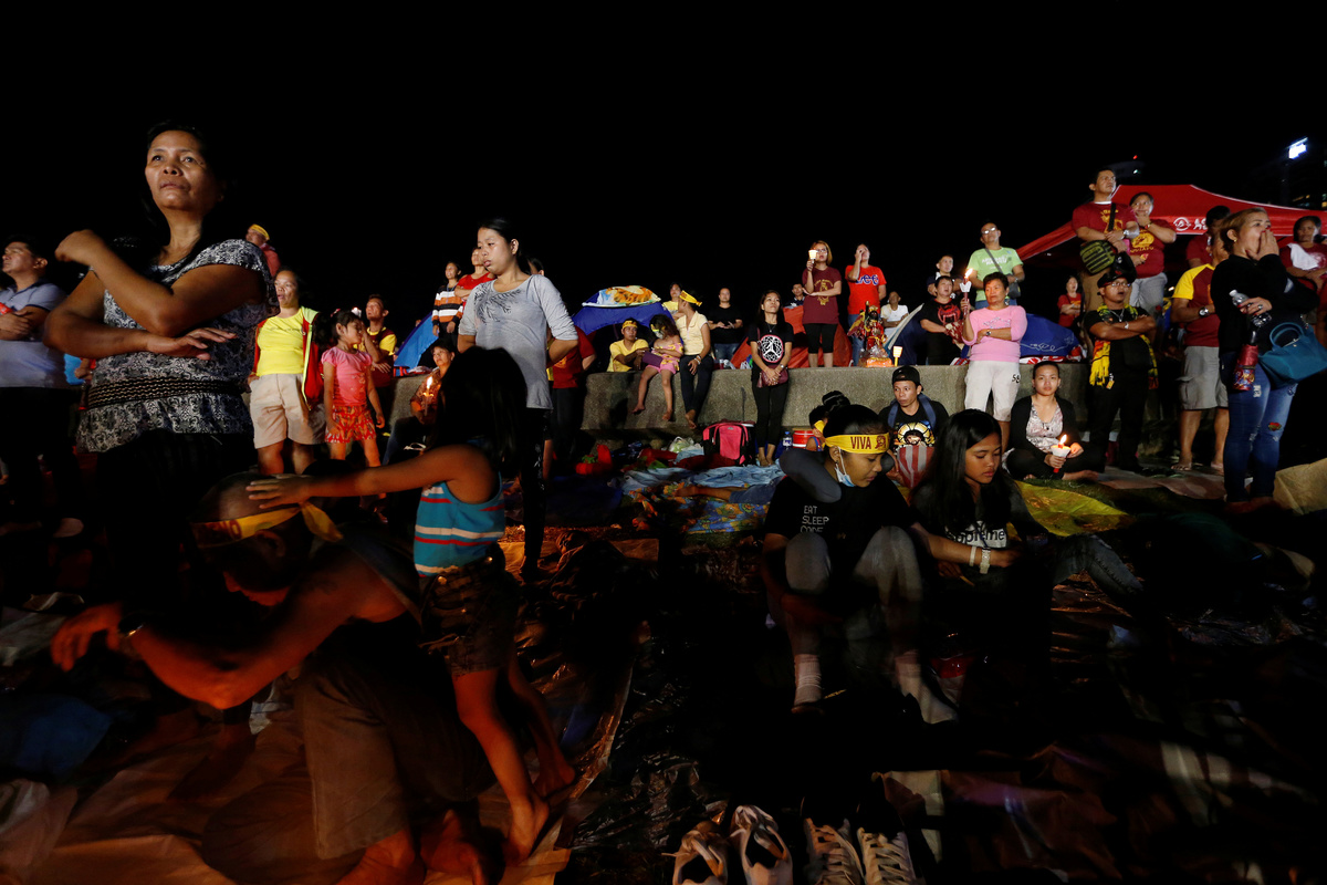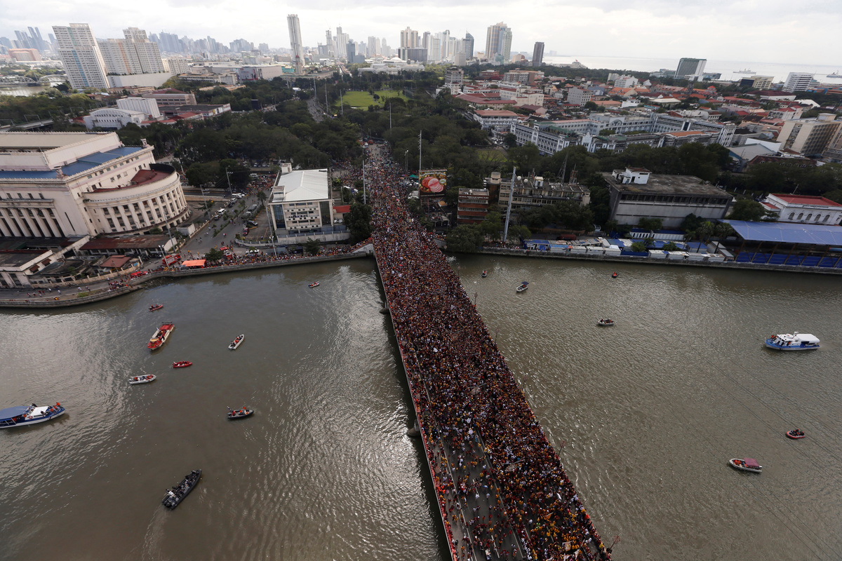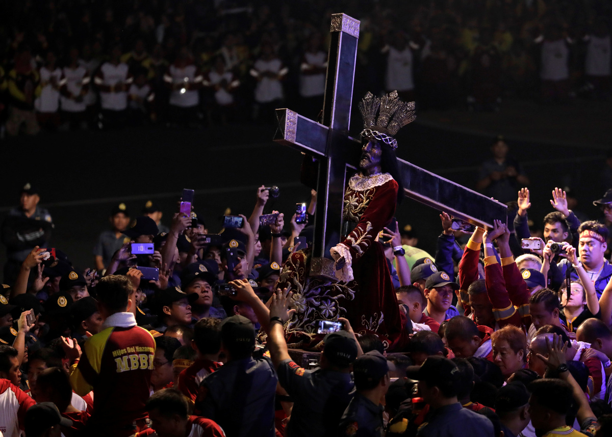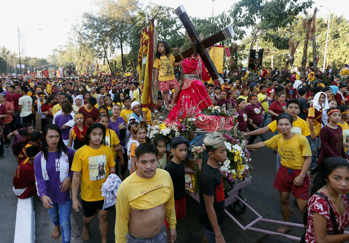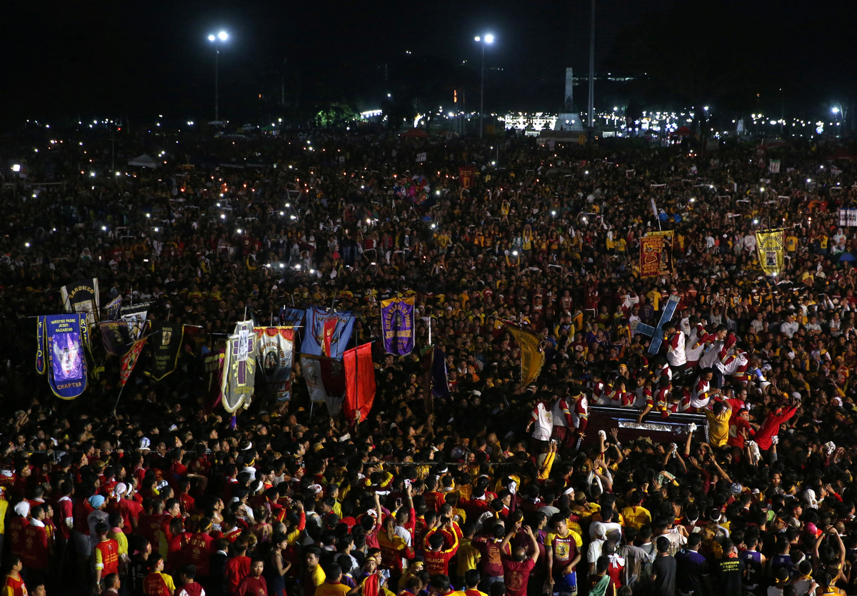 MANILA (Reuters) - Hundreds of thousands of Filipinos joined an annual procession in the Philippine capital to kiss or touch a centuries-old black wooden statue of Jesus Christ, believed to have miraculous healing powers, in a grand display of Catholic devotion.