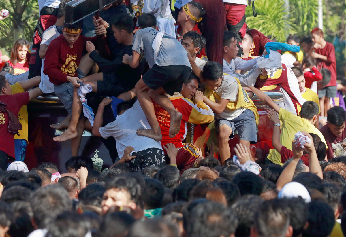 Catholic devotees jostle to touch the statue of the Black Nazarene on its feast day in Manila, Philippines, January 9, 2019. REUTERS/Soe Zeya Tun