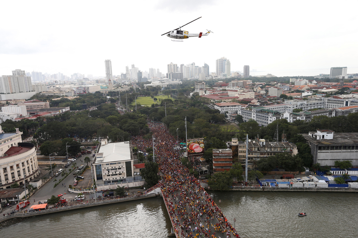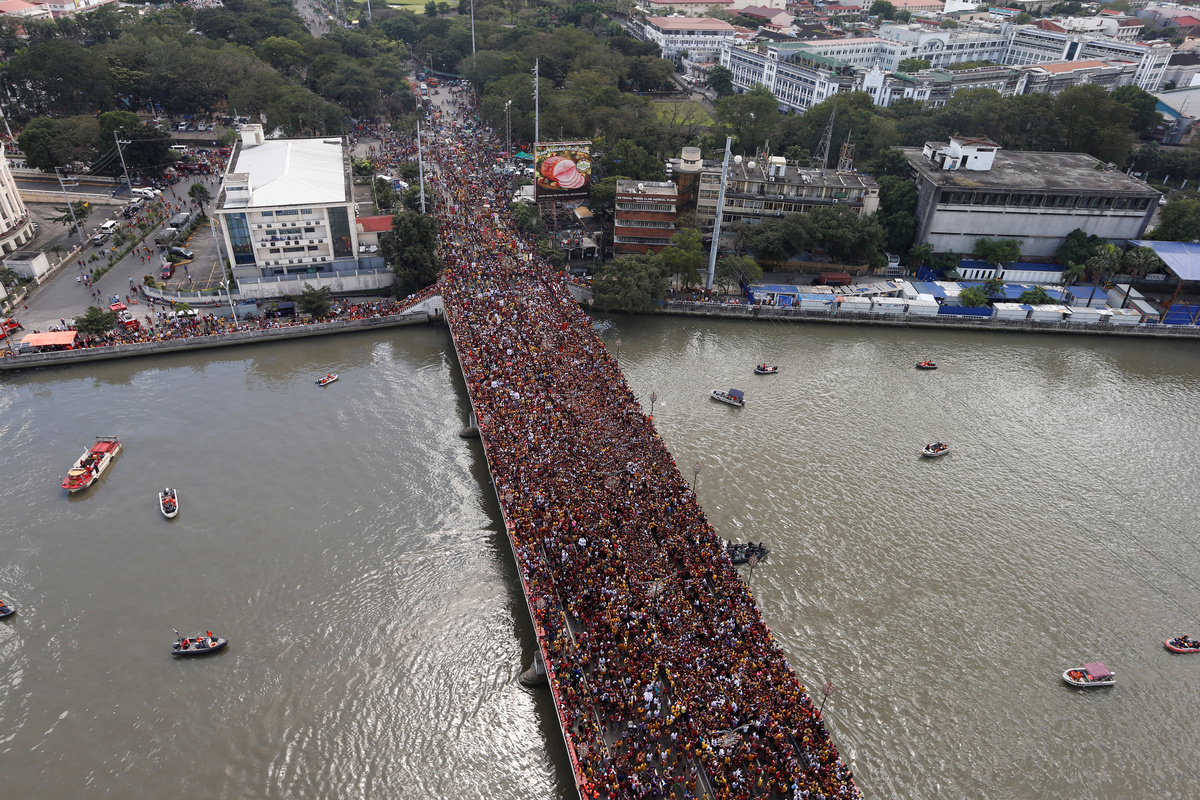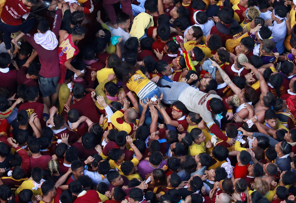 Catholic devotees jostle to touch the statue of the Black Nazarene on its feast day in Manila, Philippines, January 9, 2019. REUTERS/Soe Zeya TunA police helicopter flies as Catholic devotees jostle to touch the statue of the Black Nazarene on its feast day in Manila, Philippines, January 9, 2019. REUTERS/Soe Zeya TunCatholic devotees rest after they trying to touch the statue of the Black Nazarene on its feast day in Manila, Philippines, January 9, 2019. REUTERS/Soe Zeya TunDevotees carry the statue of the Black Nazarene as the annual procession begins on its feast day in Manila, Philippines, January 9, 2019. REUTERS/Eloisa LopezCatholic devotees wait to touch the statue of the Black Nazarene on its feast day in Manila, Philippines, Philippines, January 9, 2019. REUTERS/Soe Zeya TunCatholic devotees jostle to touch the statue of the Black Nazarene on its feast day in Manila, Philippines, January 9, 2019. REUTERS/Soe Zeya TunDevotees pass their time as they wait in their temporary shelters one day before the annual Black Nazarene procession, in Quiapo, Manila, Philippines, January 8, 2019. REUTERS/Soe Zeya TunCatholic devotees jostle to touch the statue of the Black Nazarene on its feast day in Manila, Philippines, January 9, 2019. REUTERS/Eloisa LopezDevotees surround the statue of the Black Nazarene as the annual procession begins on its feast day in Manila, Philippines, January 9, 2019. REUTERS/Eloisa LopezDevotees pass their time as they wait in their temporary shelters one day before the annual Black Nazarene procession, in Quiapo, Manila, Philippines, January 8, 2019. REUTERS/Soe Zeya TunCatholic devotees jostle to touch the statue of the Black Nazarene on its feast day in Manila, Philippines, January 9, 2019. REUTERS/Soe Zeya TunDevotees surround the statue of the Black Nazarene as the annual procession begins on its feast day in Manila, Philippines, January 9, 2019. REUTERS/Eloisa LopezDevotees pray as they wait in their temporary shelters one day before the annual Black Nazarene procession, in Quiapo, Manila, Philippines, January 8, 2019. REUTERS/Soe Zeya TunDevotees pass their time as they wait in their temporary shelters one day before the annual Black Nazarene procession, in Quiapo, Manila, Philippines, January 8, 2019. REUTERS/Soe Zeya TunDevotees eat their dinner as they wait in their temporary shelters one day before the annual Black Nazarene procession, in Quiapo, Manila, Philippines, January 8, 2019. REUTERS/Soe Zeya TunDevotees pray as they wait in their temporary shelters one day before the annual Black Nazarene procession, in Quiapo, Manila, Philippines, January 8, 2019. REUTERS/Soe Zeya TunDevotees pass their time as they wait in their temporary shelters one day before the annual Black Nazarene procession, in Quiapo, Manila, Philippines, January 8, 2019. REUTERS/Soe Zeya TunDevotees pray as they wait in their temporary shelters one day before the annual Black Nazarene procession, in Quiapo, Manila, Philippines, January 8, 2019. REUTERS/Soe Zeya TunA man sells balloons as devotees wait in their temporary shelters one day before the annual Black Nazarene procession in Quiapo, Manila, Philippines, January 8, 2019. REUTERS/Soe Zeya TunPeople pass their time one day before the annual Black Nazarene procession in Quiapo, Manila, Philippines, January 8, 2019. REUTERS/Soe Zeya TunDevotees wait in their temporary shelters as they line up one day before the annual Black Nazarene procession, to touch the image, in Quiapo, Manila, Philippines, January 8, 2019. REUTERS/Soe Zeya TunDevotees wait in their temporary shelters as they line up one day before the annual Black Nazarene procession, to touch the image, in Quiapo, Manila, Philippines, January 8, 2019. REUTERS/Soe Zeya Tun