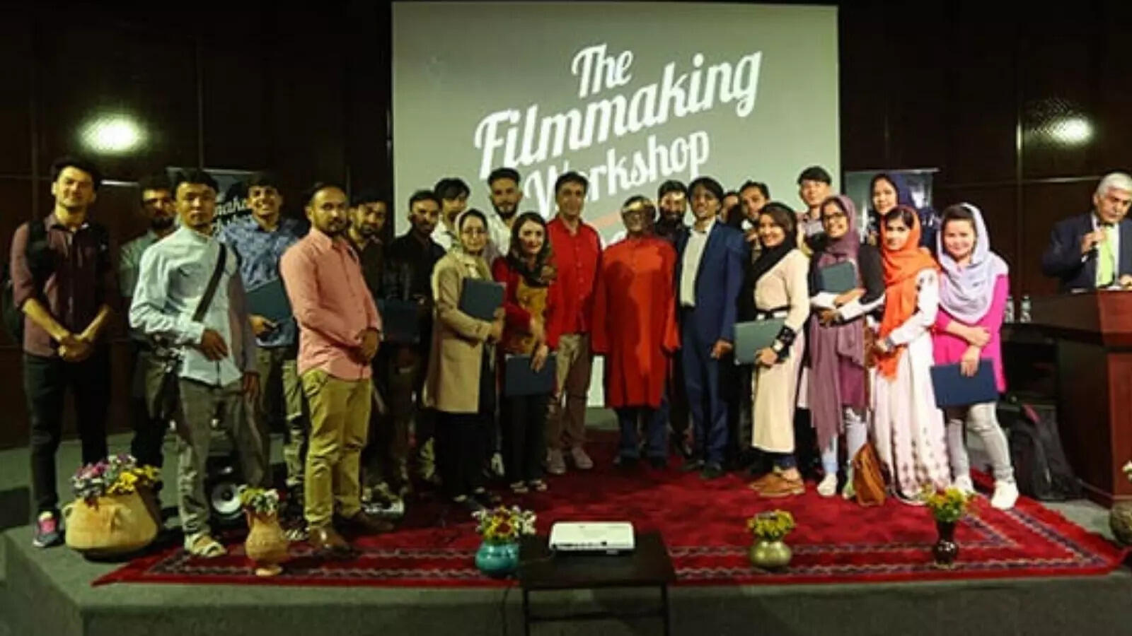 A file photo of Premendra Mazumder at the workshop on cinema in Kabul in 2019