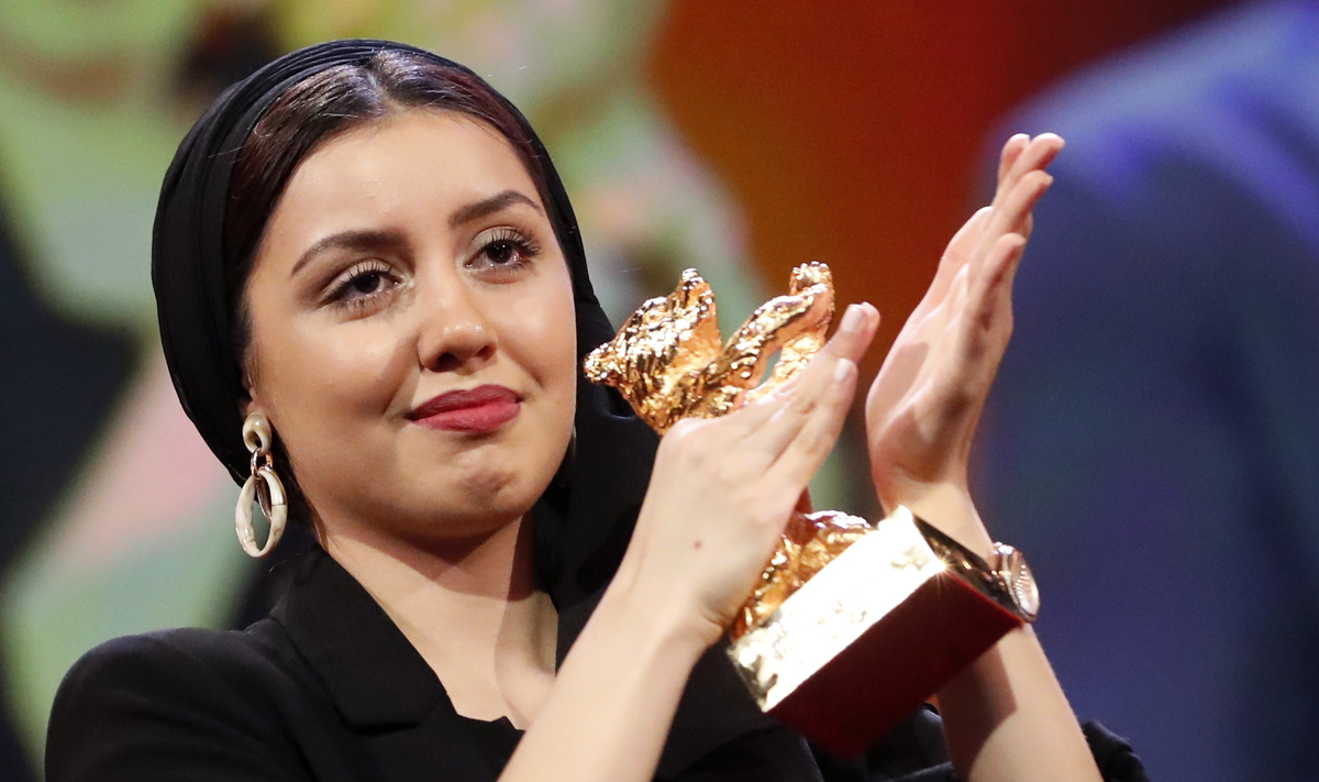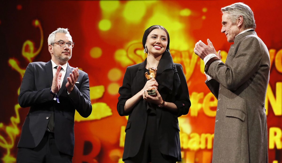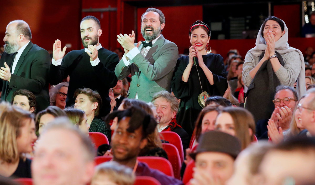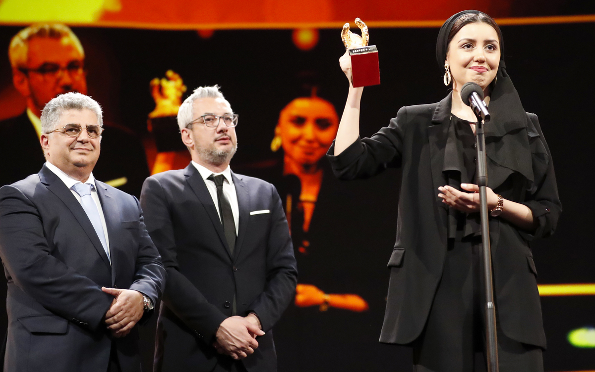 His daughter Baran, who stars in one chapter of the four-part film, picked up the award on his behalf in the German capital and later held up before the cameras a smartphone on which the director addressed a news conference by video call.